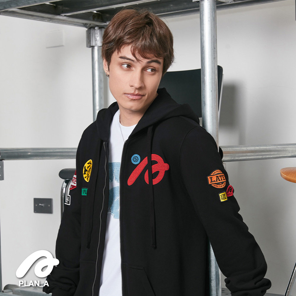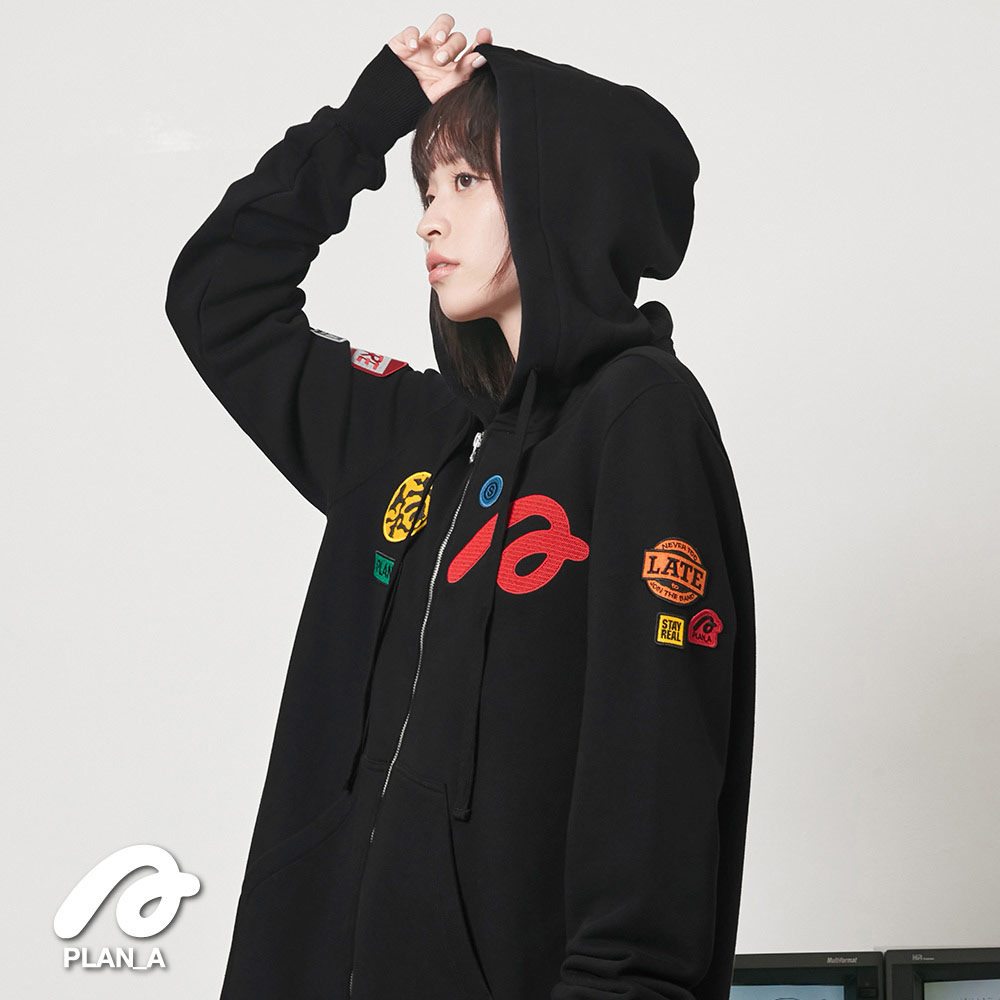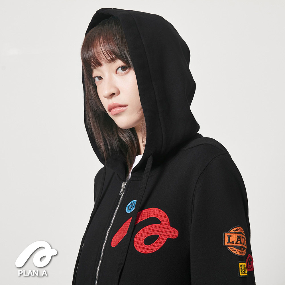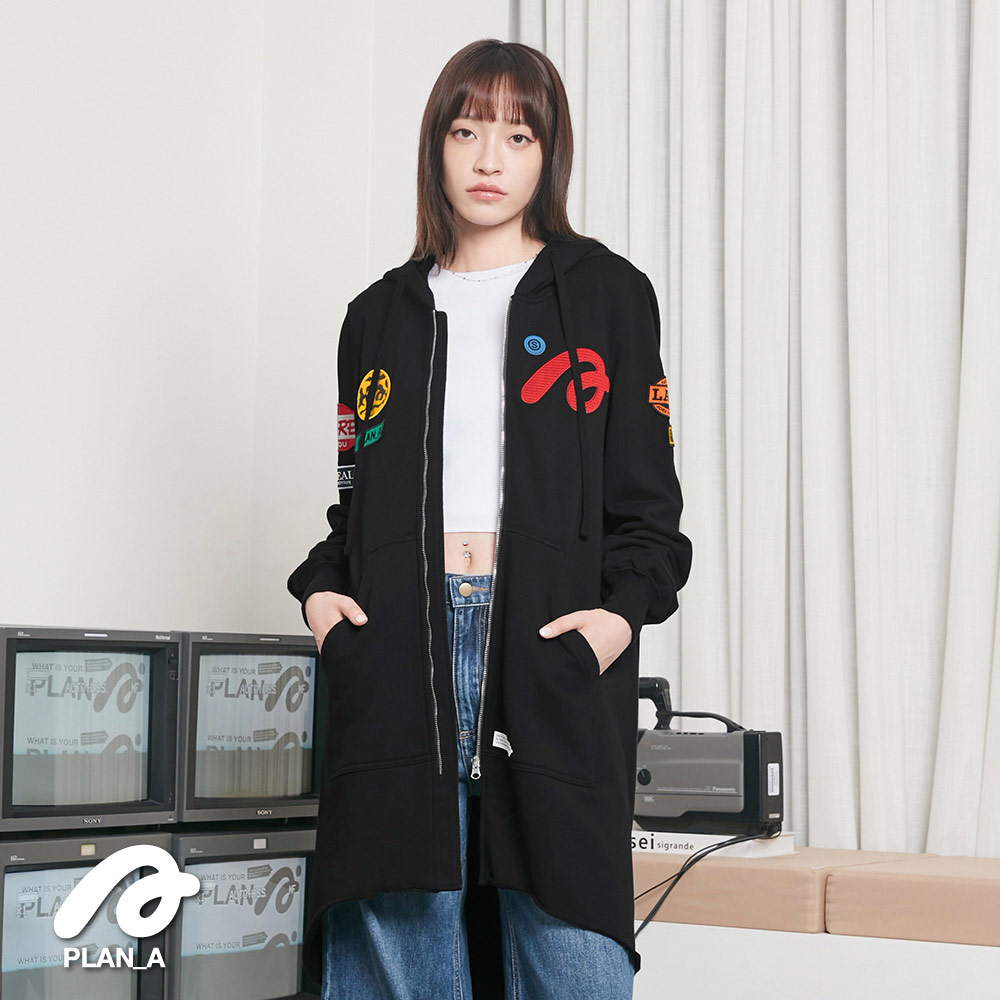 門襟採用拉鍊設計配合連帽,下擺弧形剪裁配上剛好的長度,視覺上更能拉長身形比例
