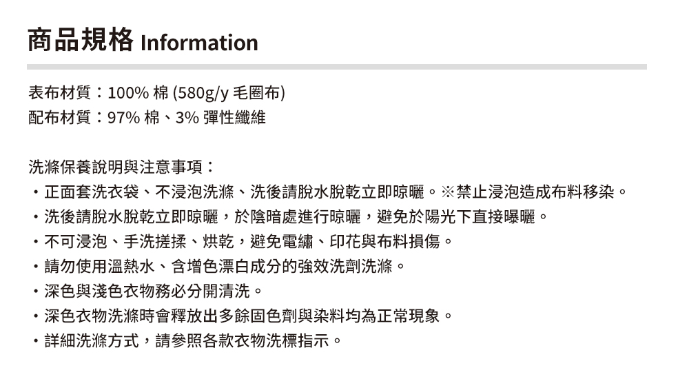 純棉舒適的毛圈面料/耐洗不變形/不易起球