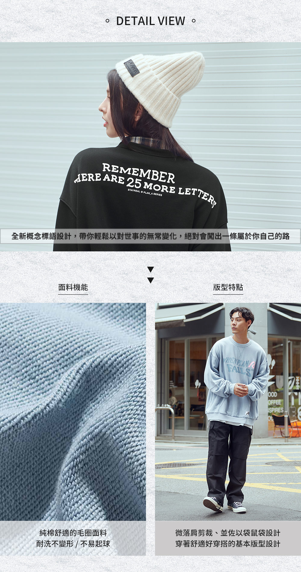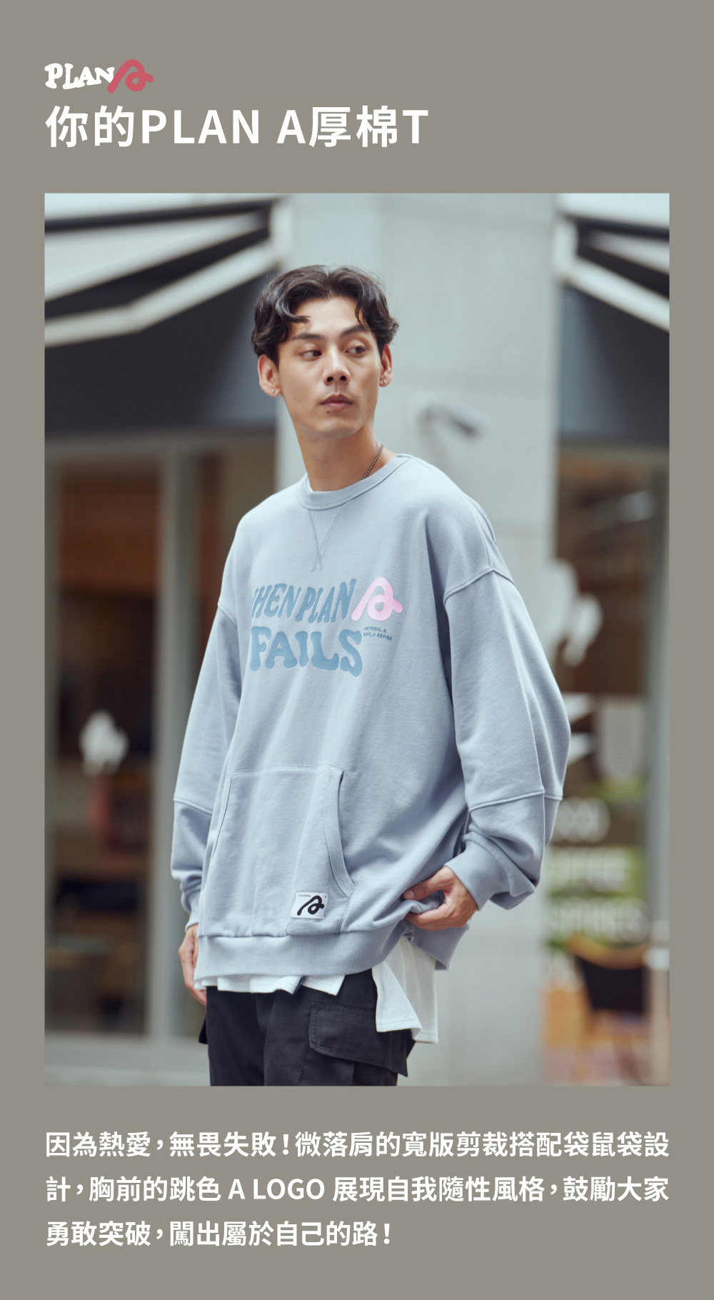 微落肩剪裁、並佐以袋鼠袋設計,穿著舒適好穿搭的基本版型設計