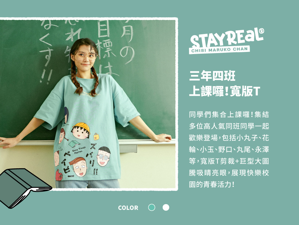 STAYREAL x Chibi Maruko 三年四班上課囉!寬版T