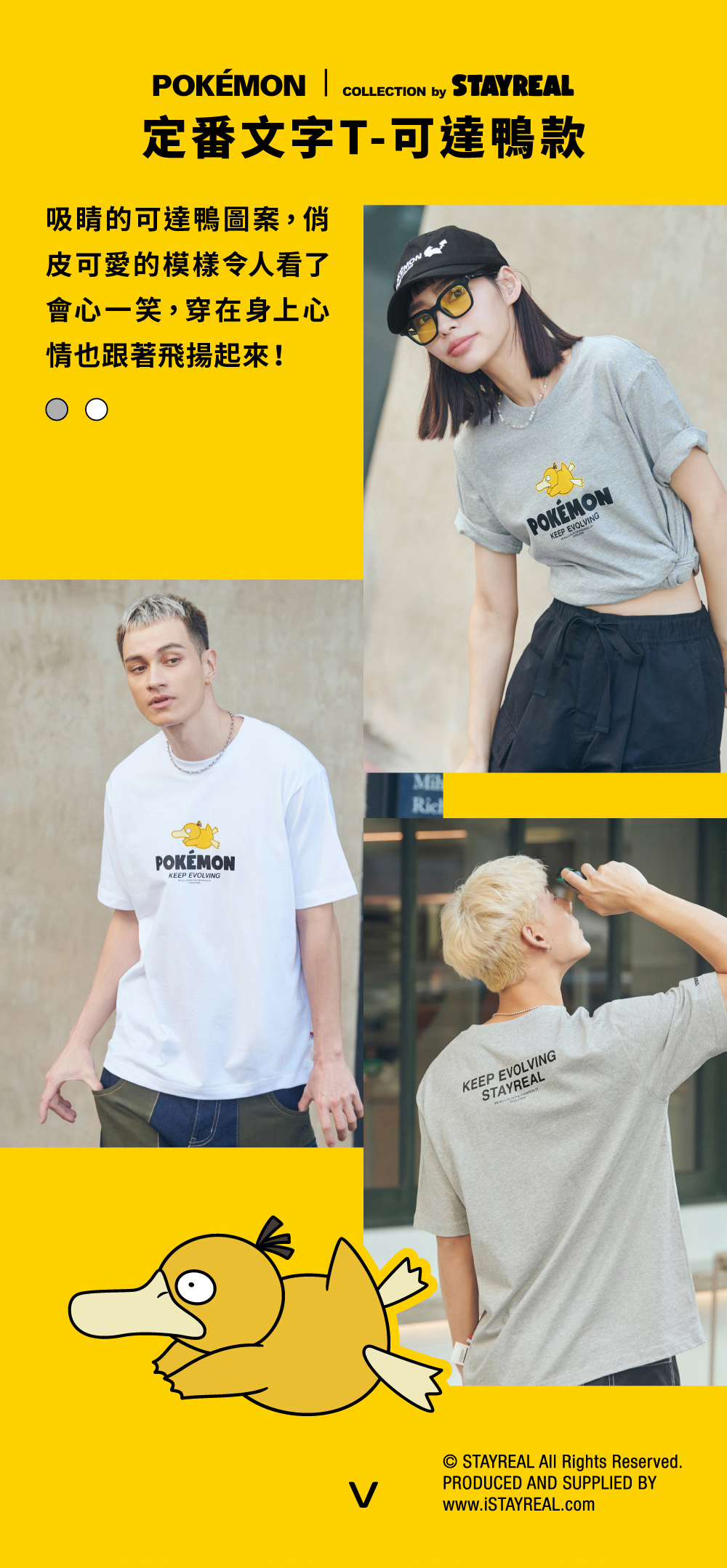 KEEP EVOLVING!快加入冒險的行列吧!吸睛的可達鴨圖案,俏皮可愛的模樣令人看了會心一笑,穿在身上心情也跟著飛揚起來