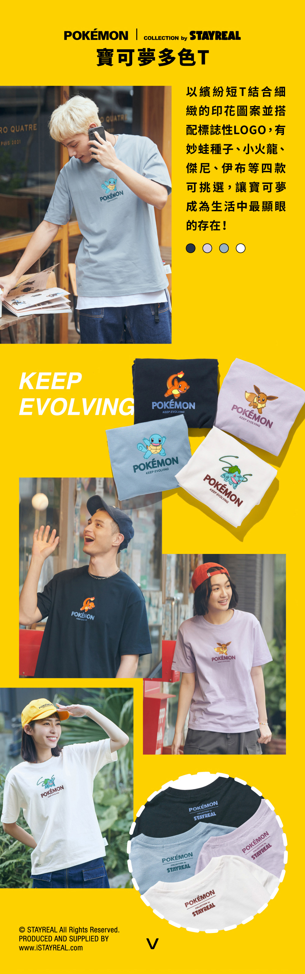 出發吧!一起探索好玩的世界!以繽紛短T結合細緻的印花圖案並搭配標誌性LOGO,讓寶可夢成為生活中最顯眼的存在!有妙蛙種子、小火龍、傑尼、伊布等四款人氣角色可挑選,快來尋找一起冒險的夥伴吧!