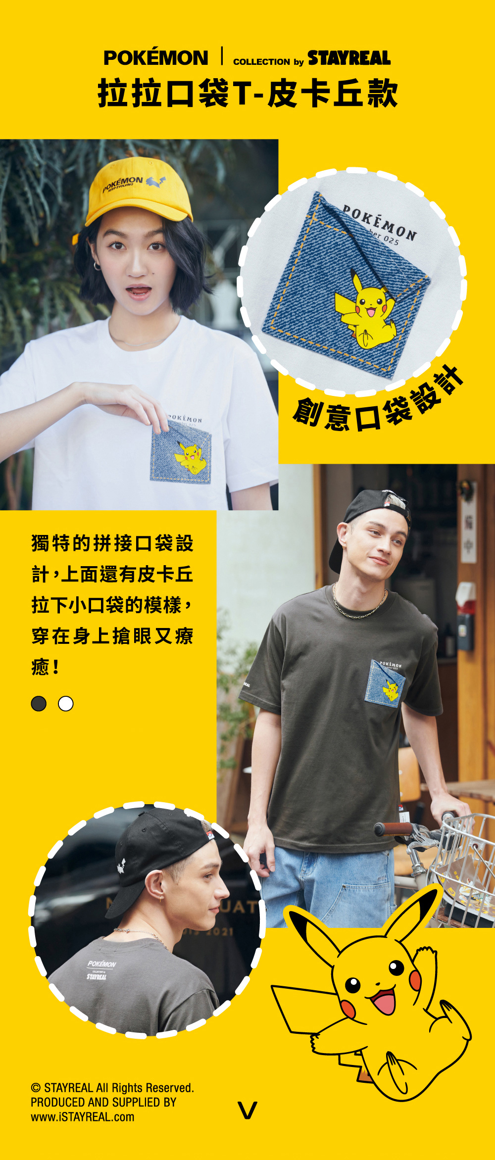 獨特的拼接口袋設計,讓衣服更有亮點,瞧瞧皮卡丘拉下小口袋的模樣,穿在身上搶眼又療癒,令人看的目不轉睛