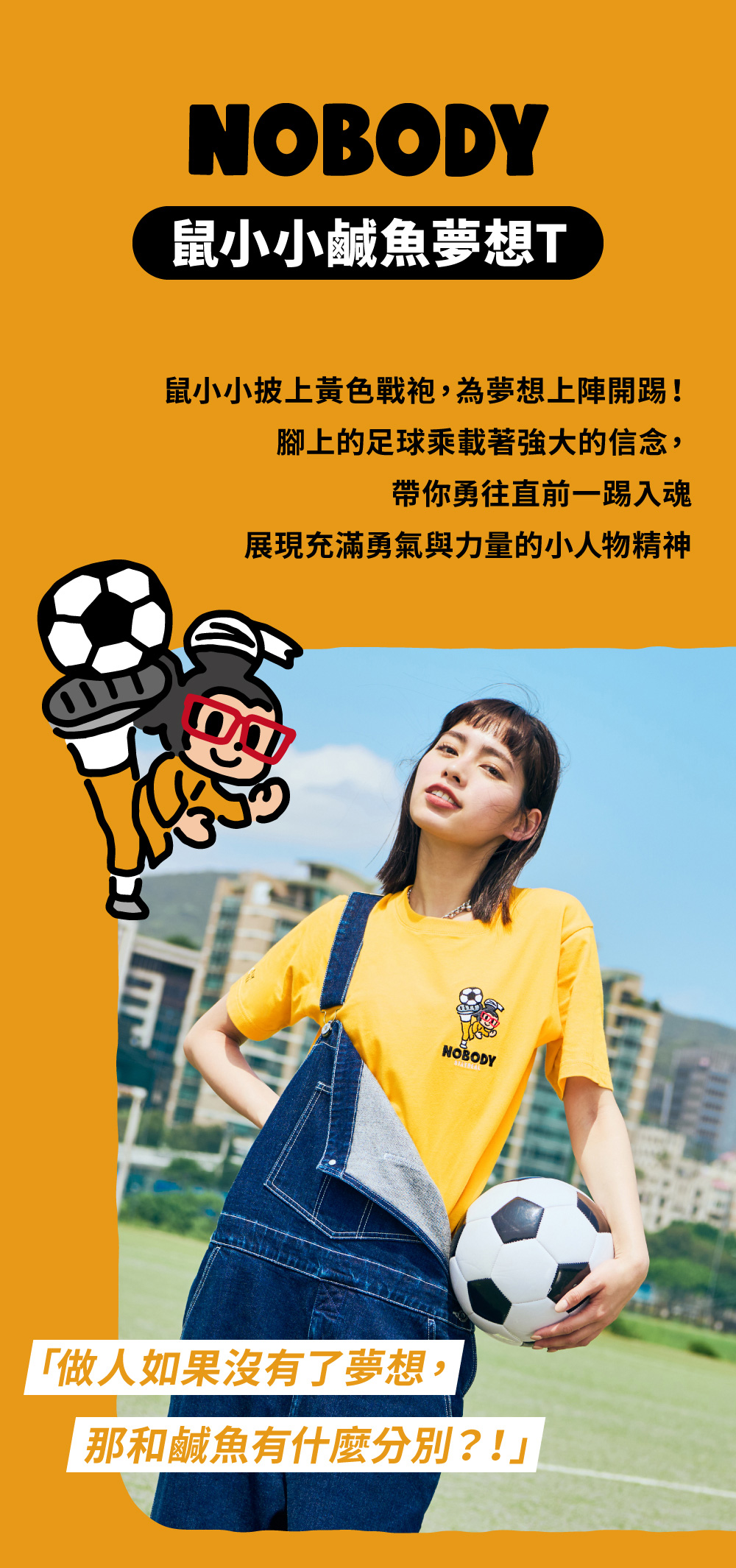 你的人生經典台詞會是哪一句?鼠小小與STAYREAL會為你選上這一句:「人如果沒有了夢想,那和鹹魚有什麼兩樣?!」鼠小小黃色戰袍上身、腳上躍上一顆足球。Action!帶領你,為人生夢想上陣開踢吧!