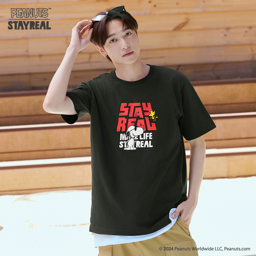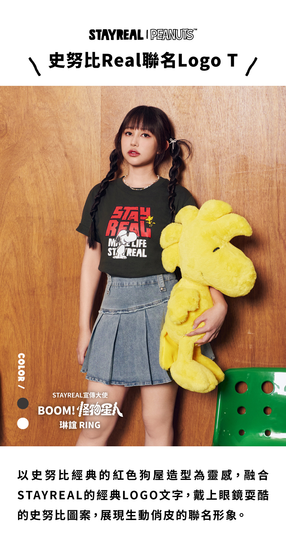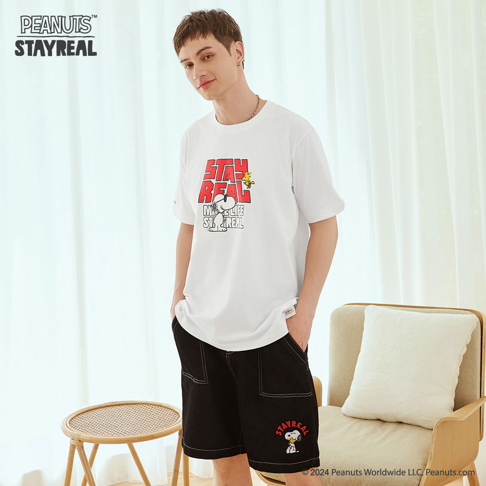 以Snoopy經典的紅色狗屋造型,創意融合入STAYREAL LOGO文字標語,呈現出最酷最與眾不同的聯名LOGO T!身為STAYREAL與SNOOPY迷,是不是不能不擁有呢?!