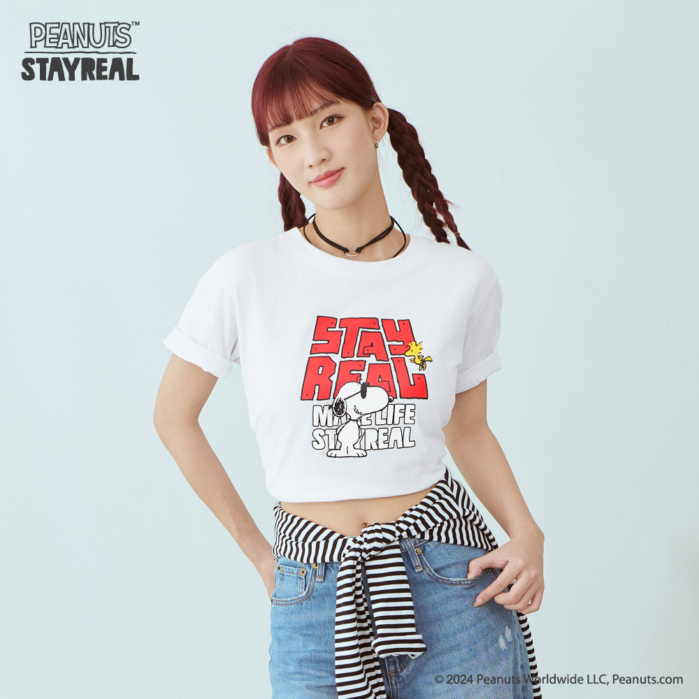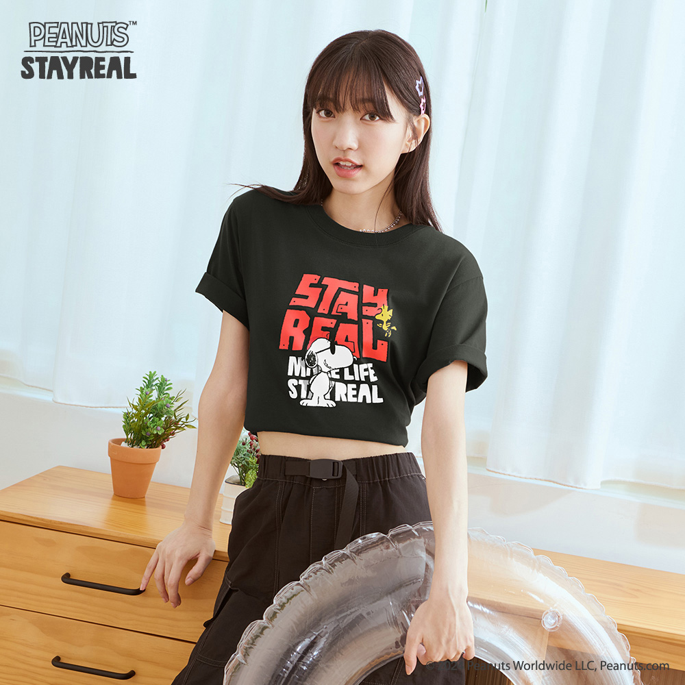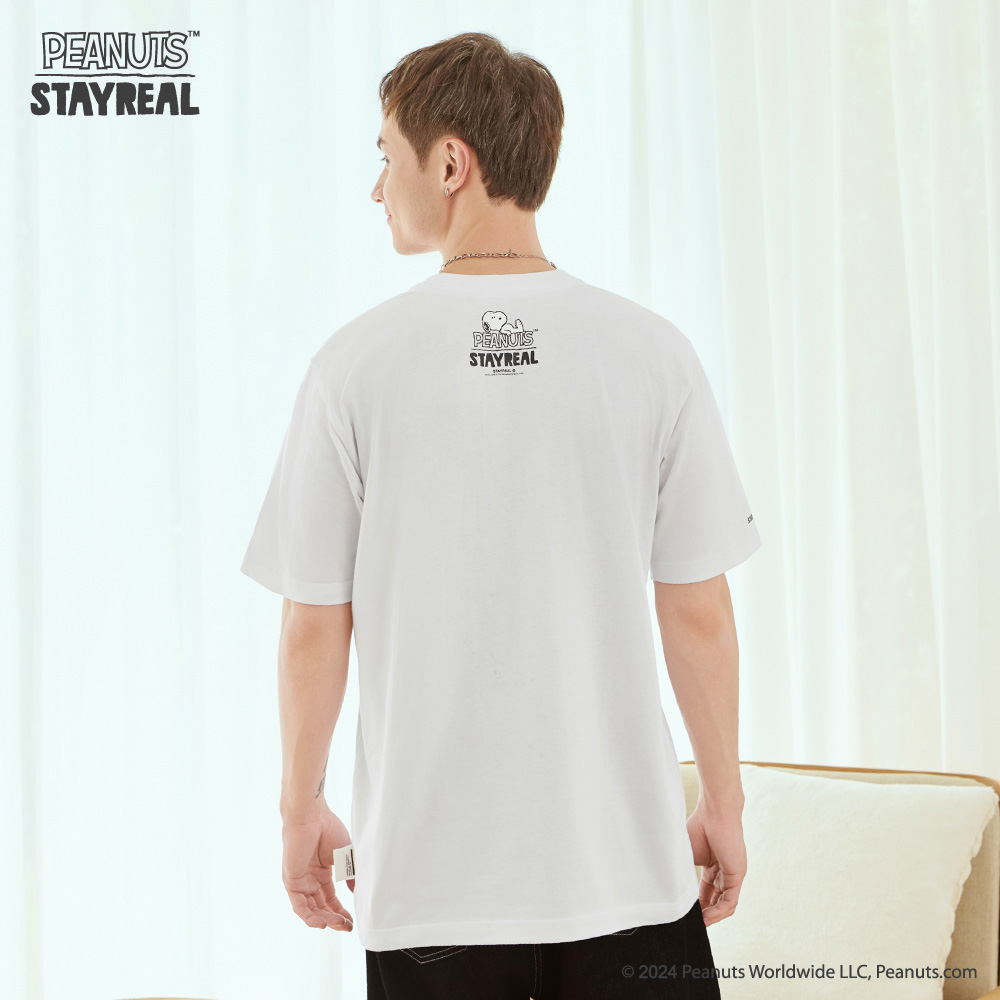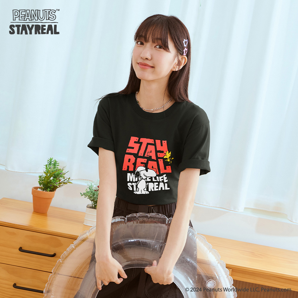 以Snoopy經典的紅色狗屋造型,創意融合入STAYREAL LOGO文字標語,呈現出最酷最與眾不同的聯名LOGO T!身為STAYREAL與SNOOPY迷,是不是不能不擁有呢?!