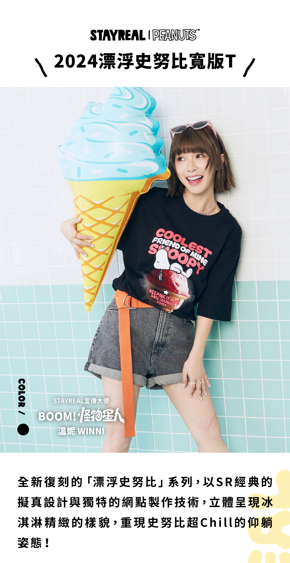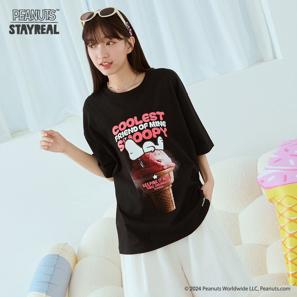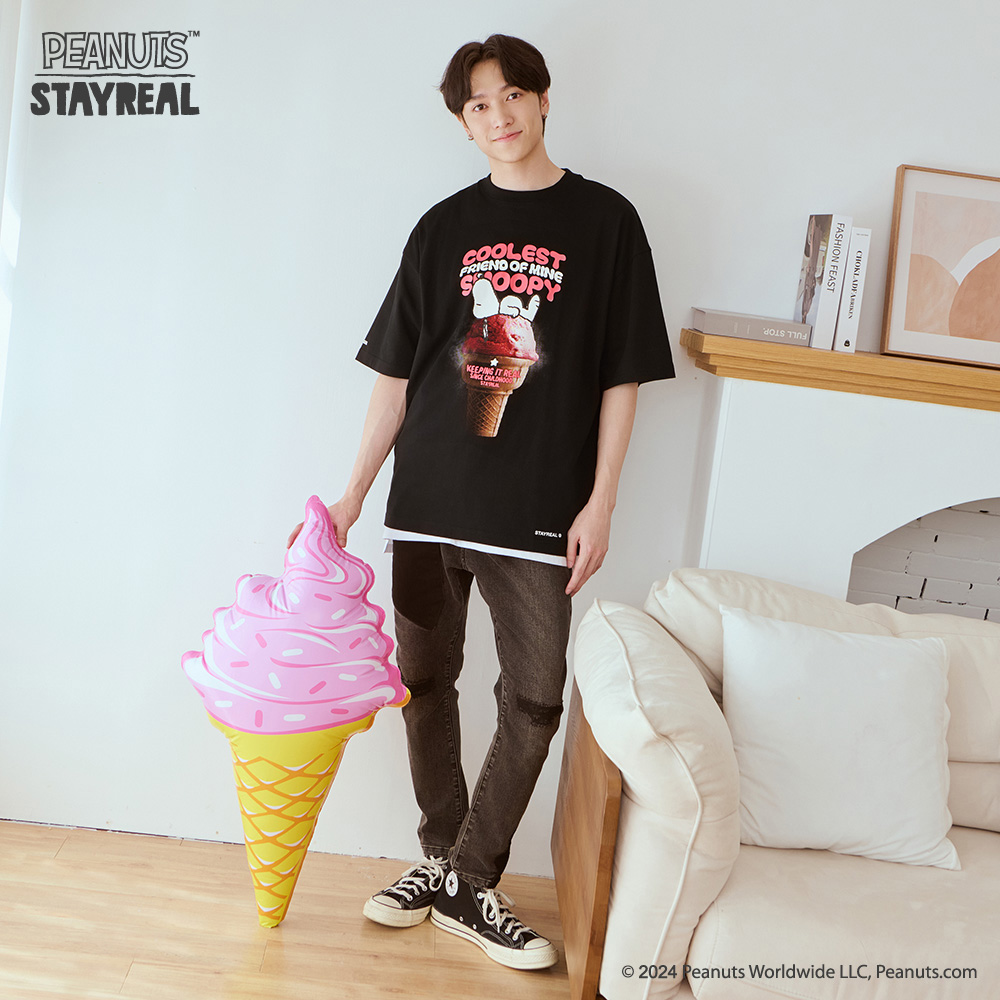 「回到STAYREAL與Snoopy漂浮相遇的那㇐天」!2024 STAYREAL再次讓Snoopy以超Chill的仰躺姿態,重返當年的話題冰淇淋,重返做你今夏最酷的朋友!