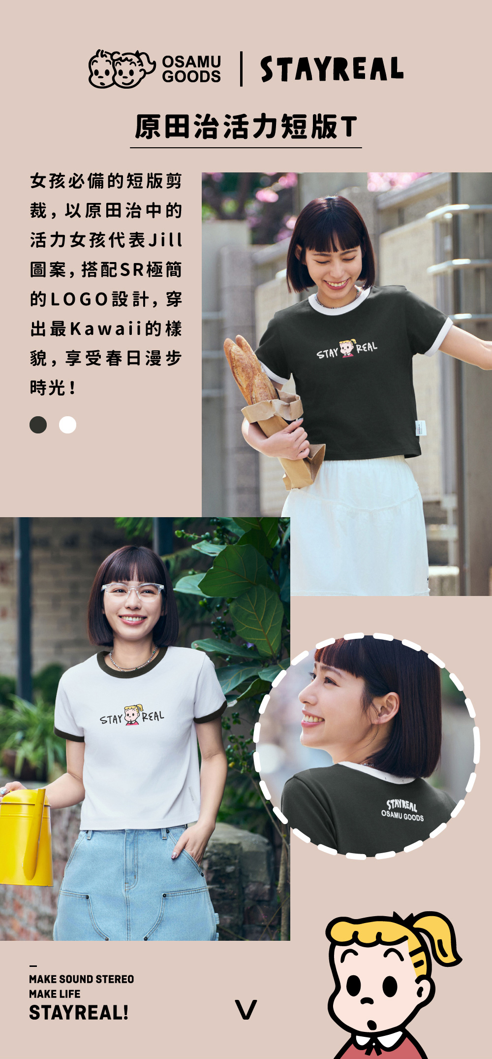 以原田治中的活力女孩代表Jill,搭配SR極簡的Logo設計,帶出最可愛的T恤樣貌