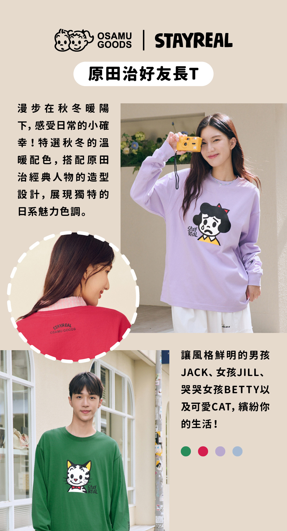 匯集原田治的經典人物(JACK/JILL/BATTY/CAT),融入在多彩的長T剪裁版型之中