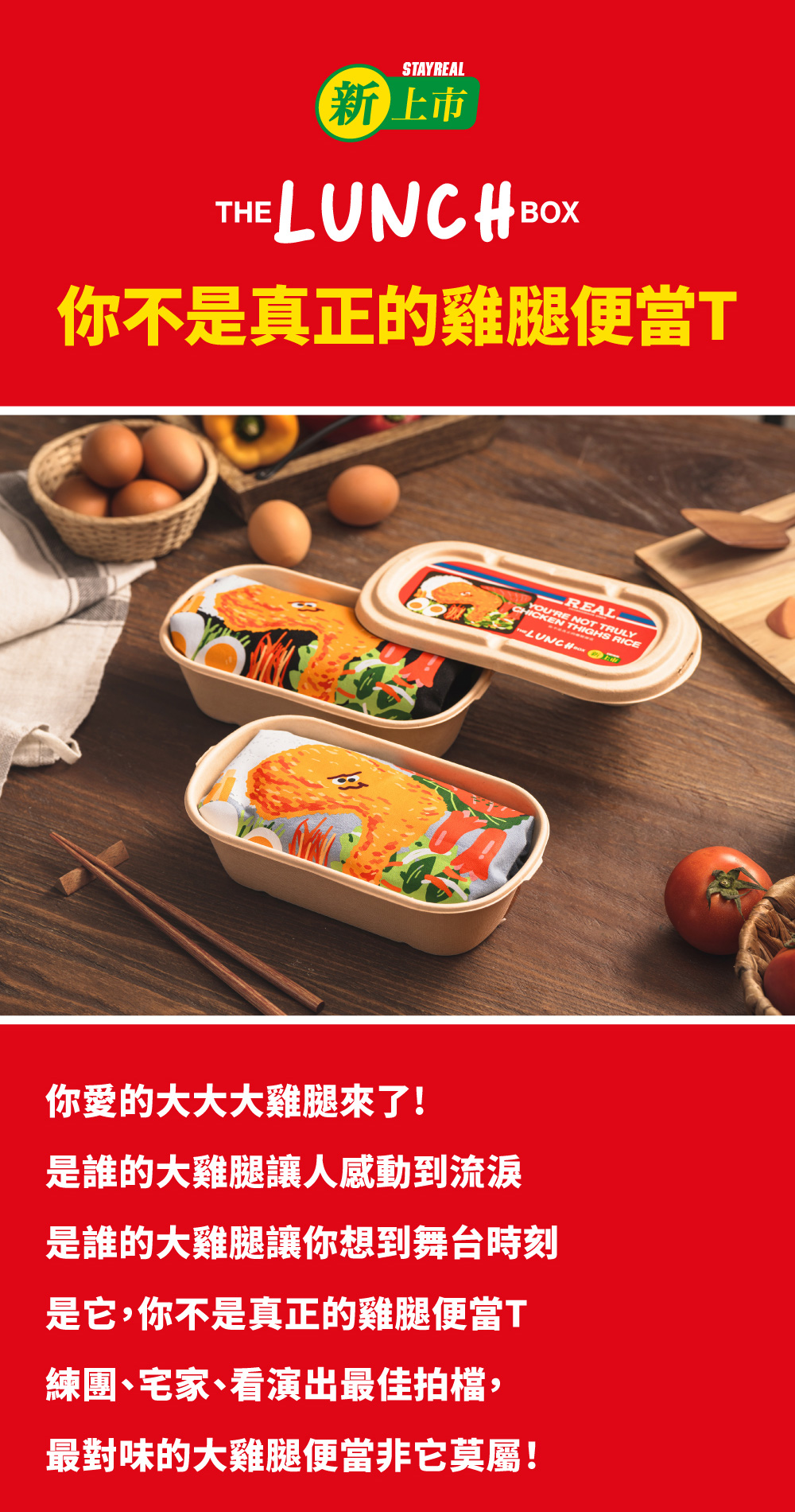 結合便利商店中暢銷的「雞腿便當」& 取Mayday錄音室名「大雞腿」的概念元素,繪製出玩心與潮流兼具的話題商品