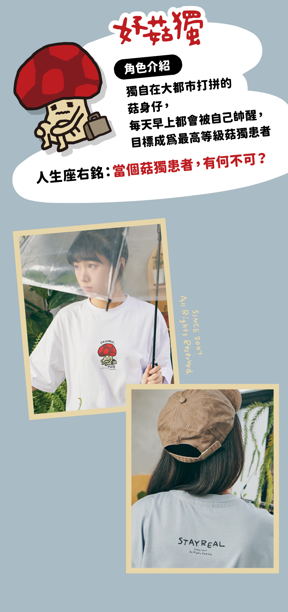 捲曲坐在一角的「好菇獨」,就像是「菇」身一人在大都市打拼的你我,夜深人靜時,很想喊出一聲「Hug me.I’m lonely.」的討拍心情。