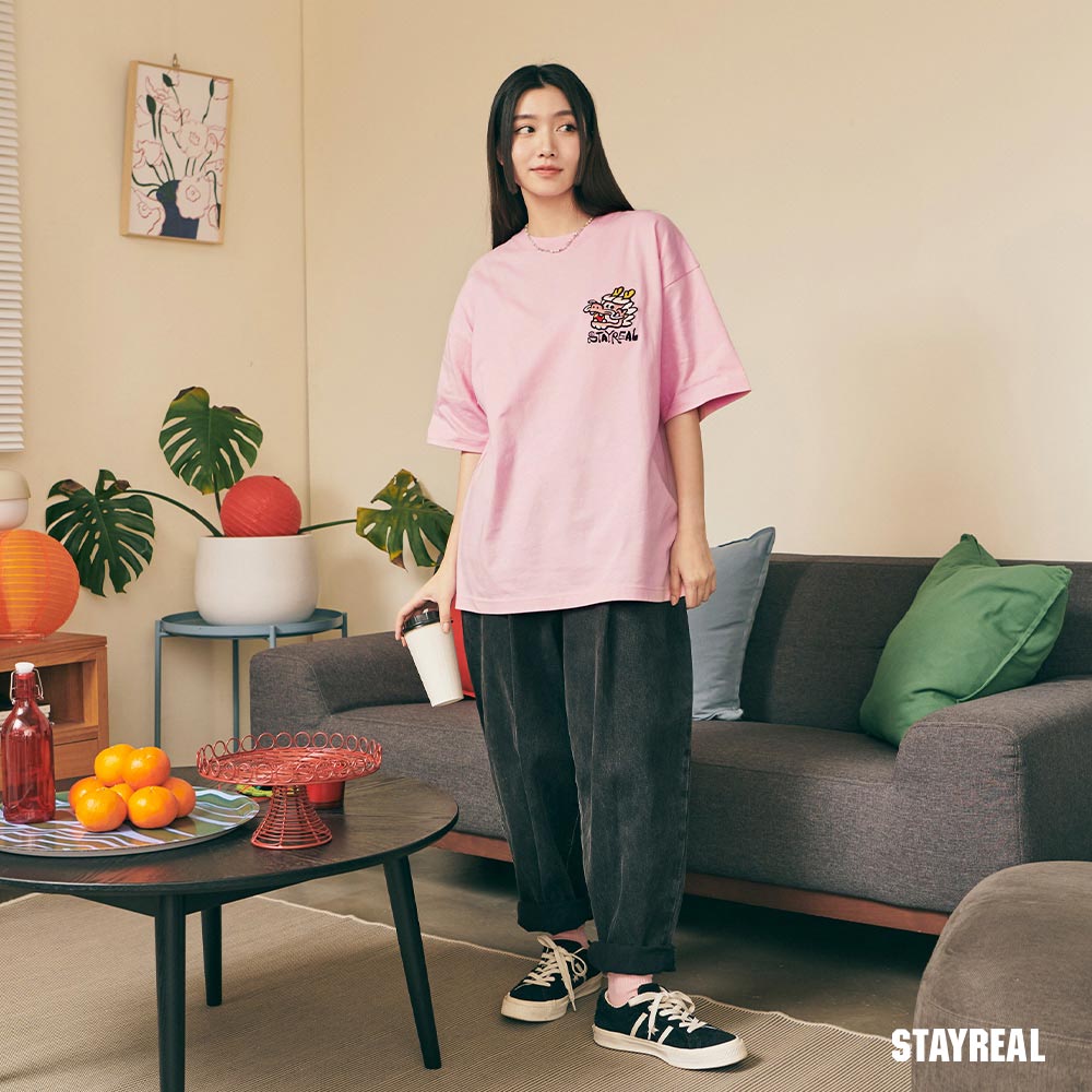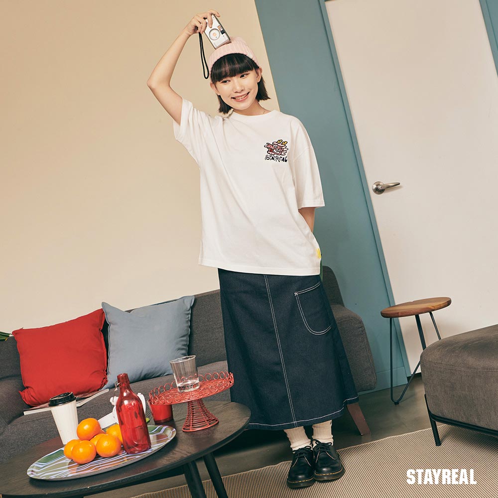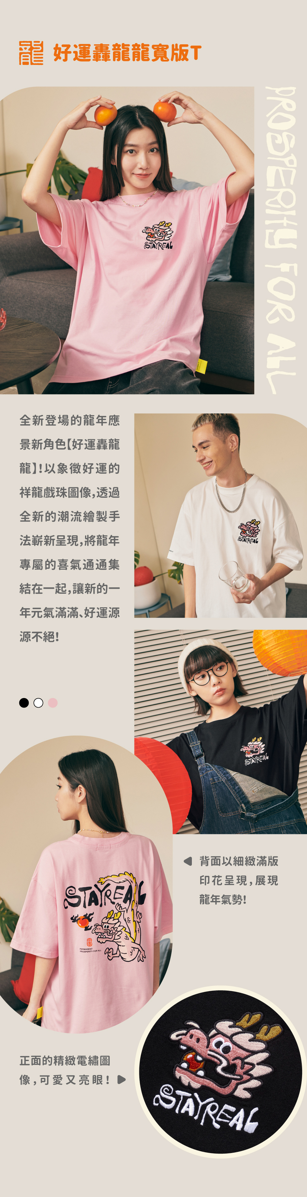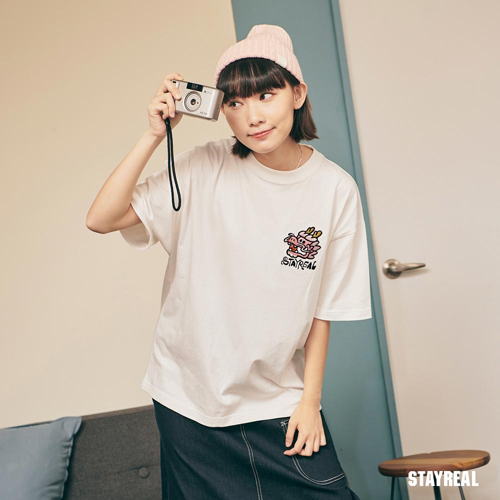 將極具中國風的祥龍戲珠(代表吉祥平安之意)的設計圖騰,融合進實下流行的潮流塗鴉文字Logo,演繹出獨具STAYREAL創意風格的開運龍系列商品