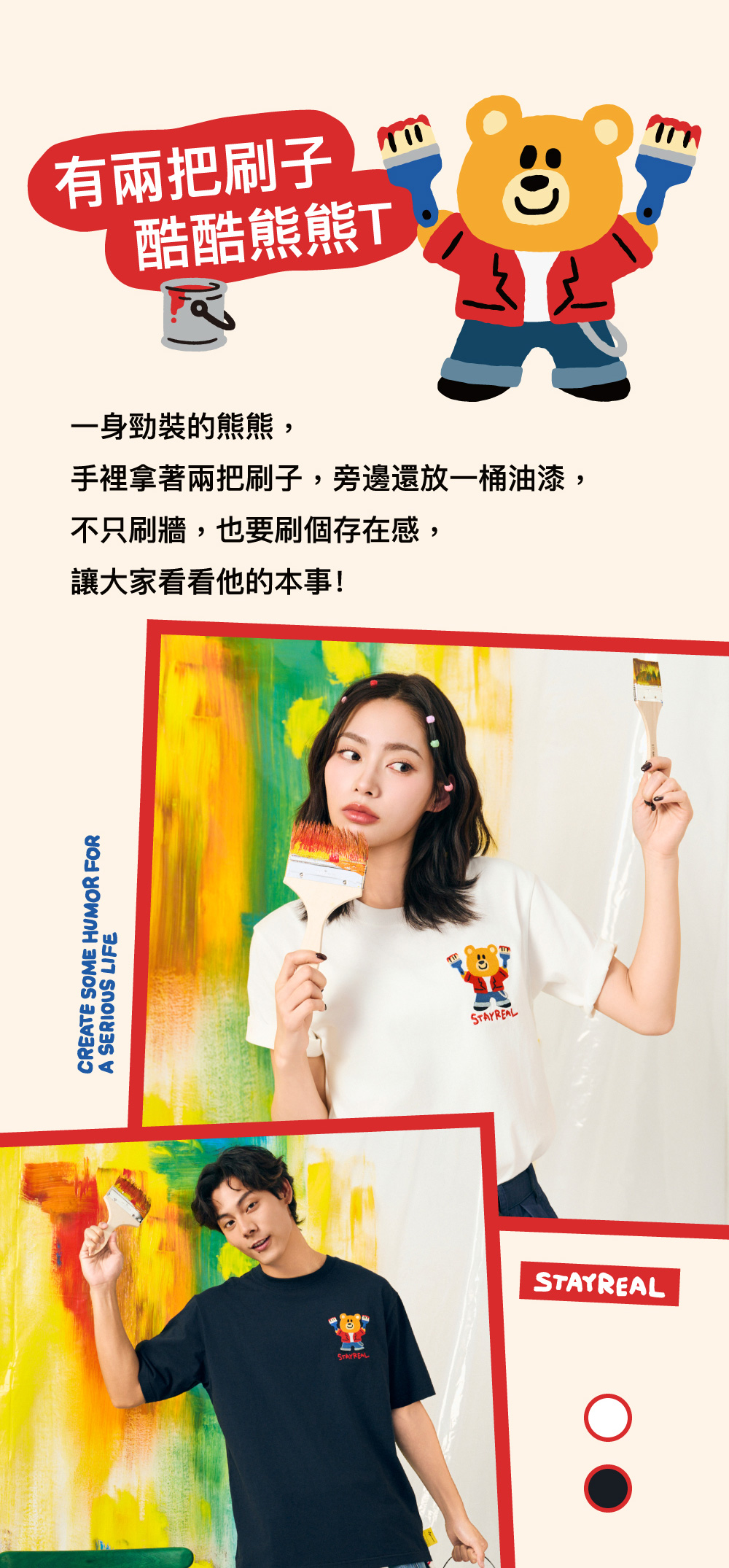 總是一身酷炫勁裝登場的熊熊,搞笑幽默地Show出:「是誰說他沒有兩把刷子,帥帥地刷起油漆的呢?!」