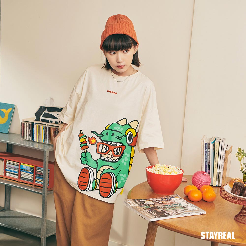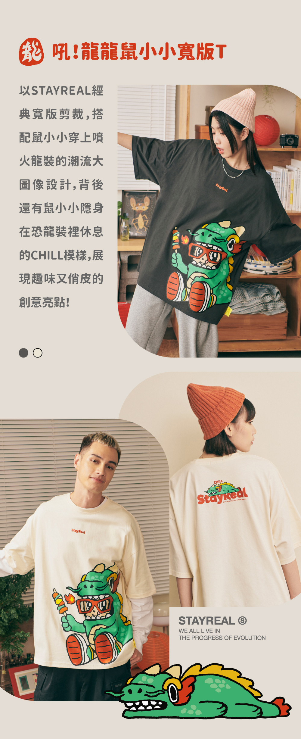 以寬版版型設計,搭配上鼠小小極具潮流感的大圖像噴火龍裝扮,與你一起迎接超火的龍年到來!
