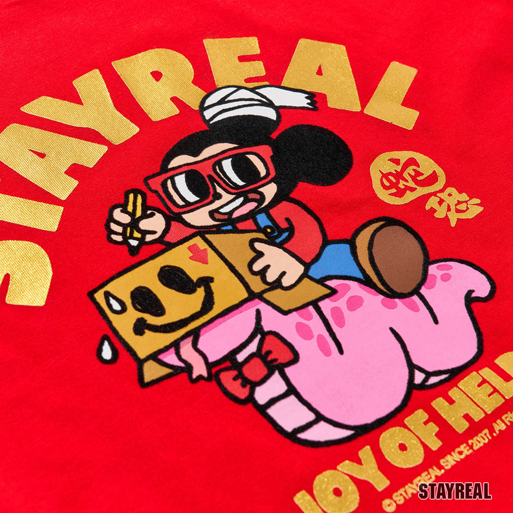 STAYREAL以幽默的諧音梗作為2025蛇年的設計發想:鼠小小陪著害羞擁有i人性格的社恐蛇蛇,戴上安全感十足的紙箱面具,做好面對四面八方湧來地溫馨新年問答的作戰準備