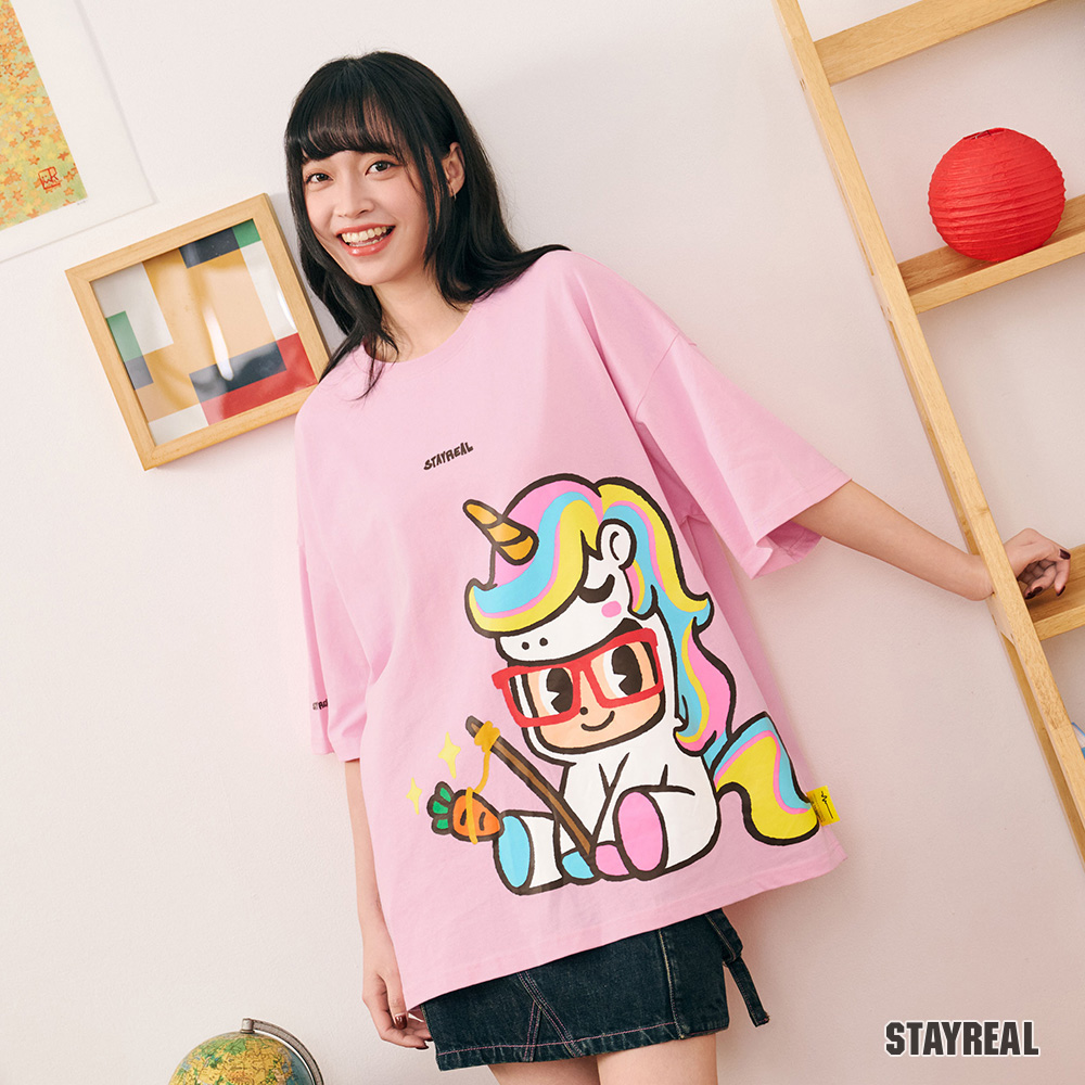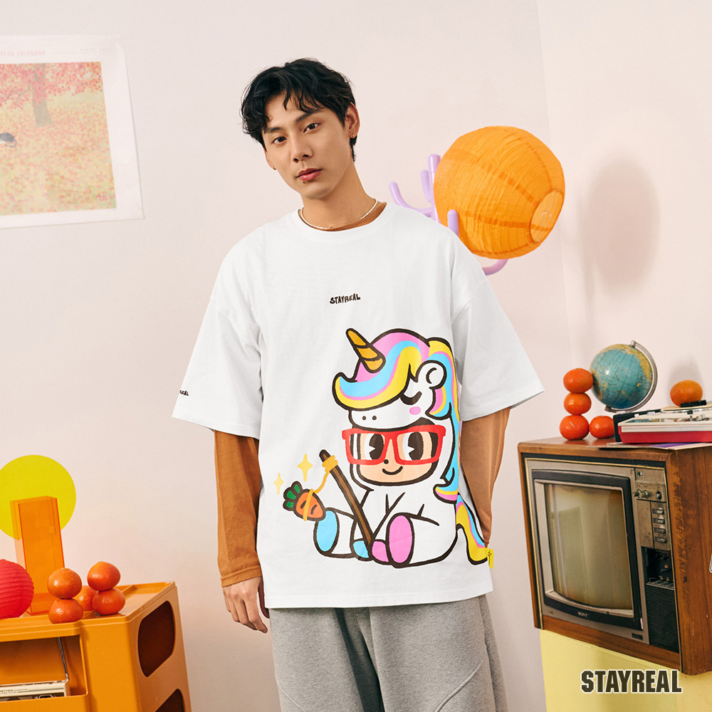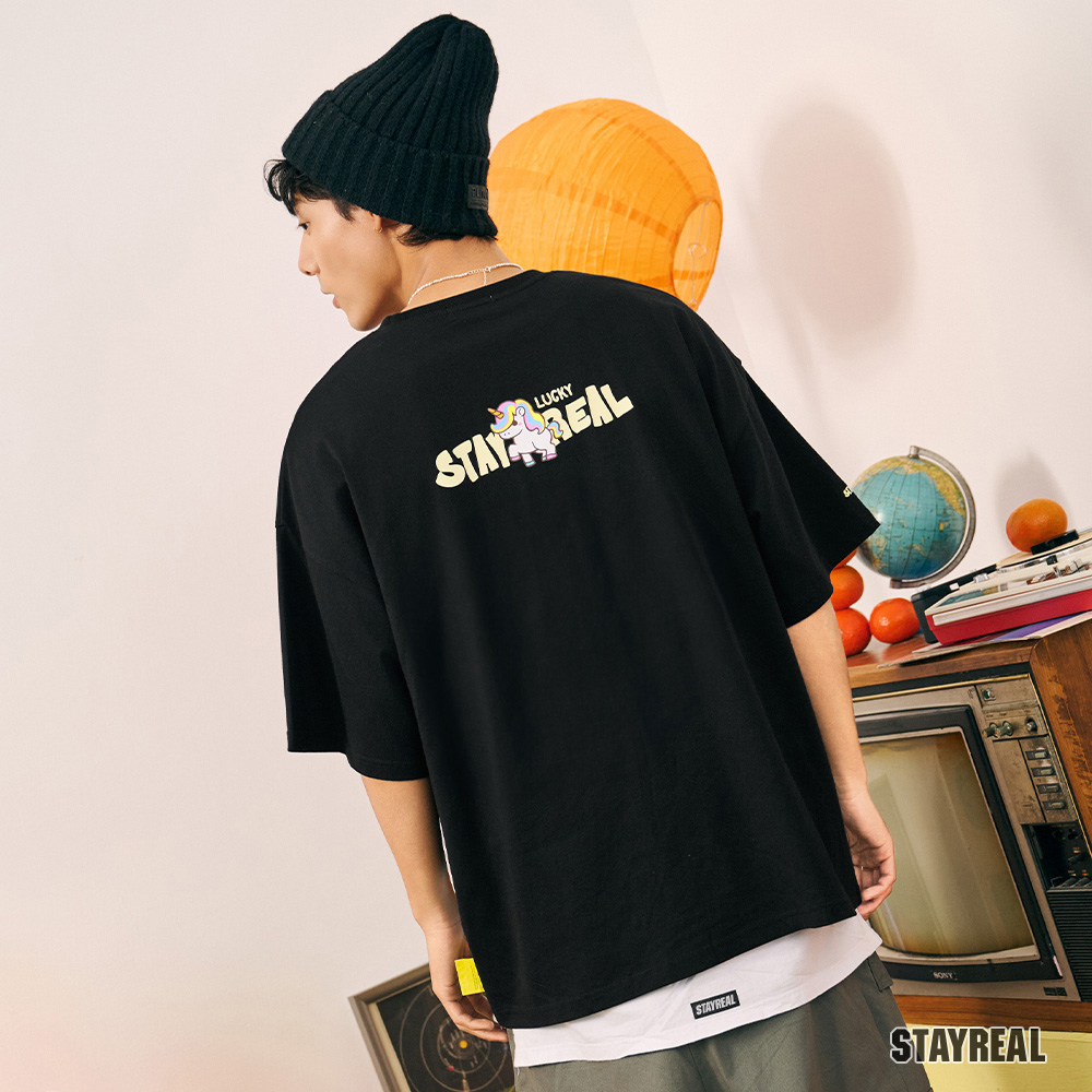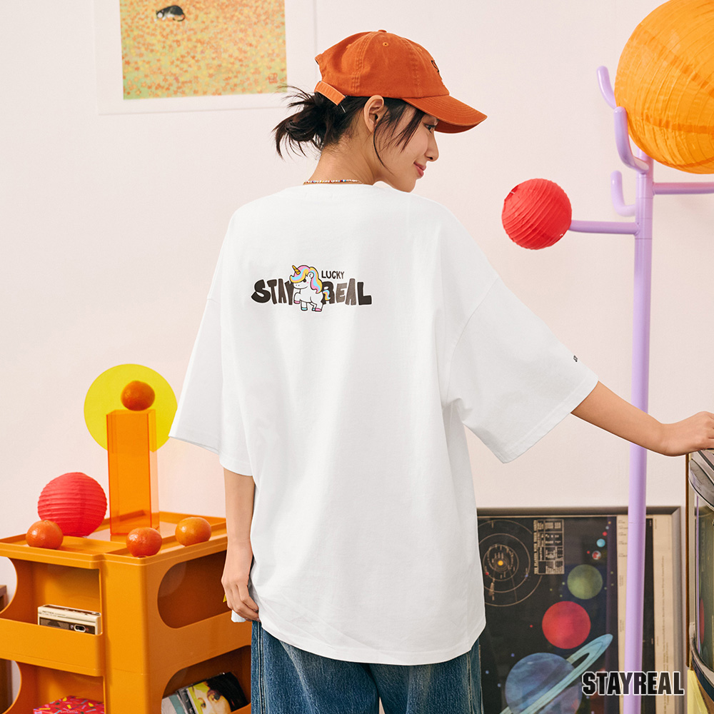 STAYREAL 好運加馬鼠小小寬版T