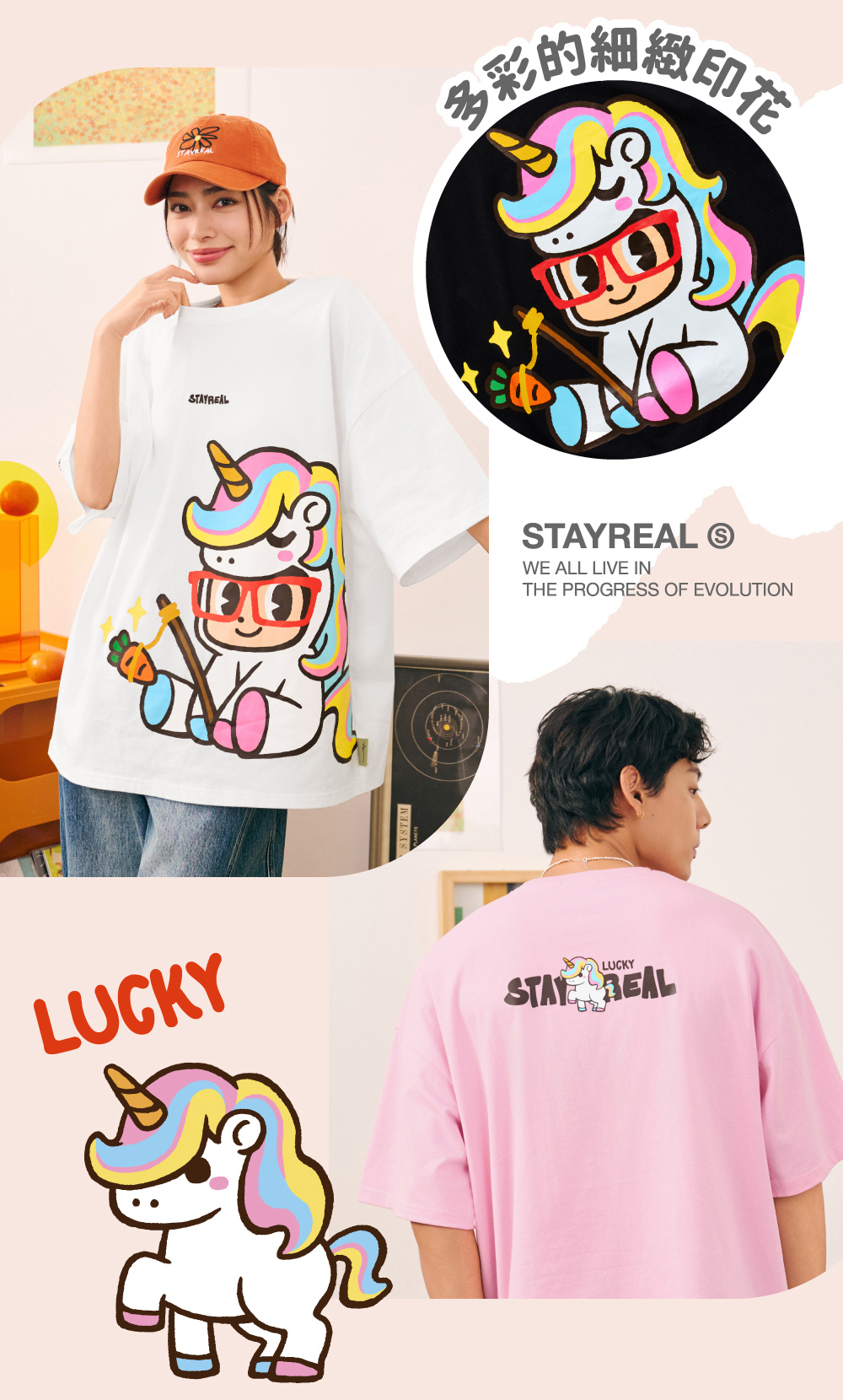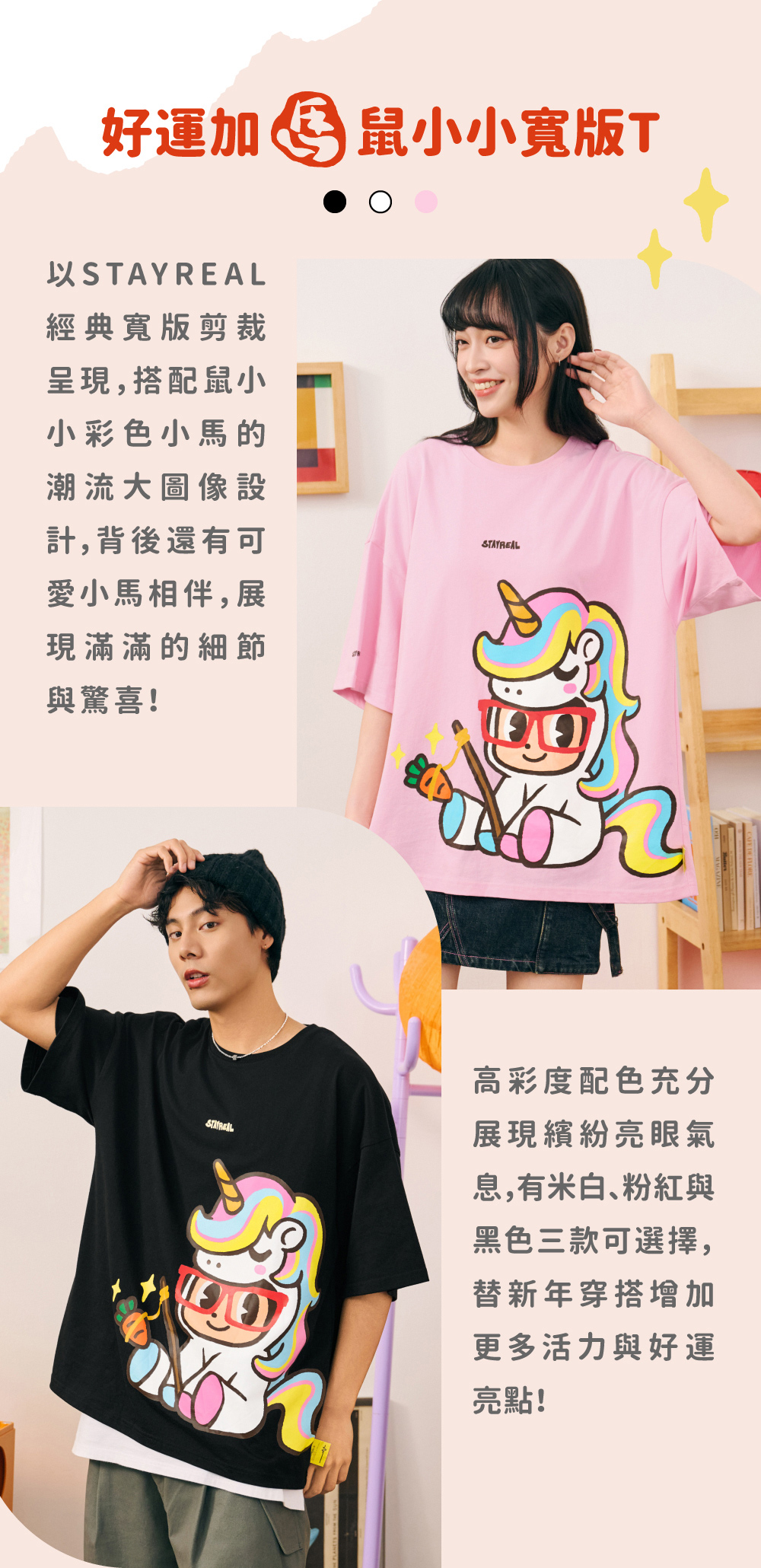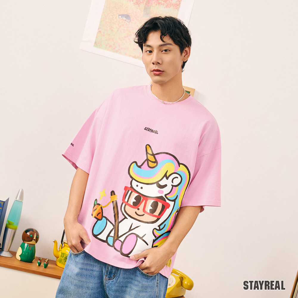 STAYREAL 好運加馬鼠小小寬版T