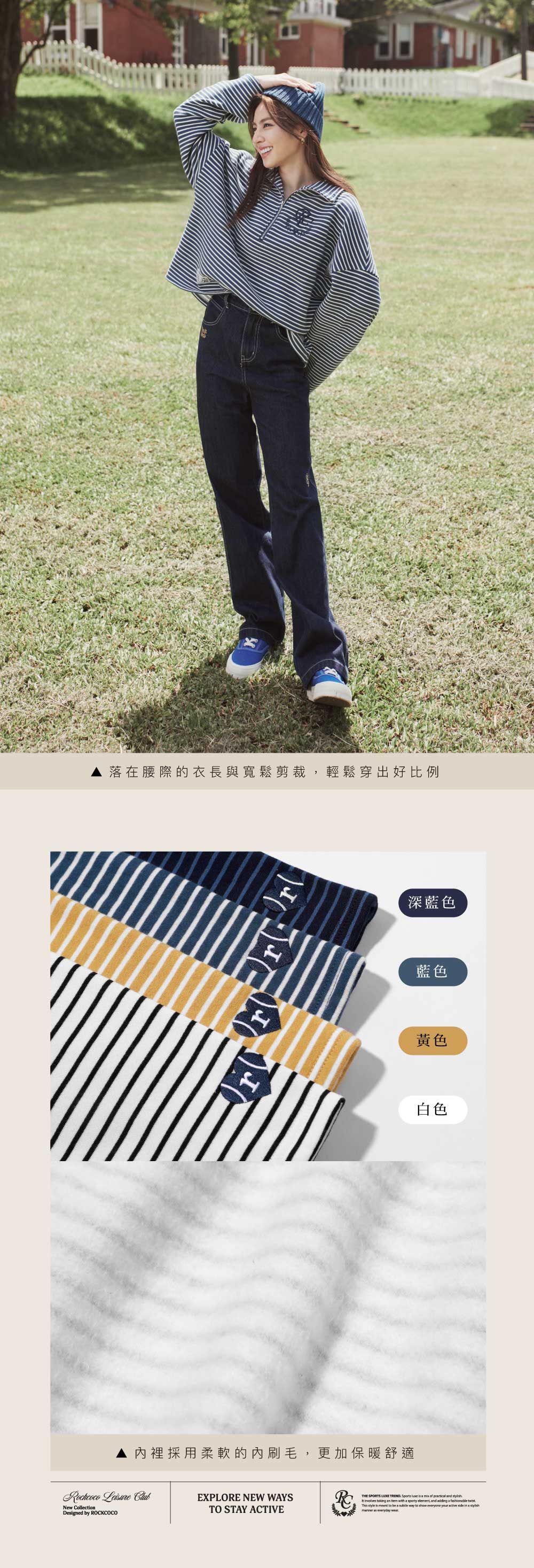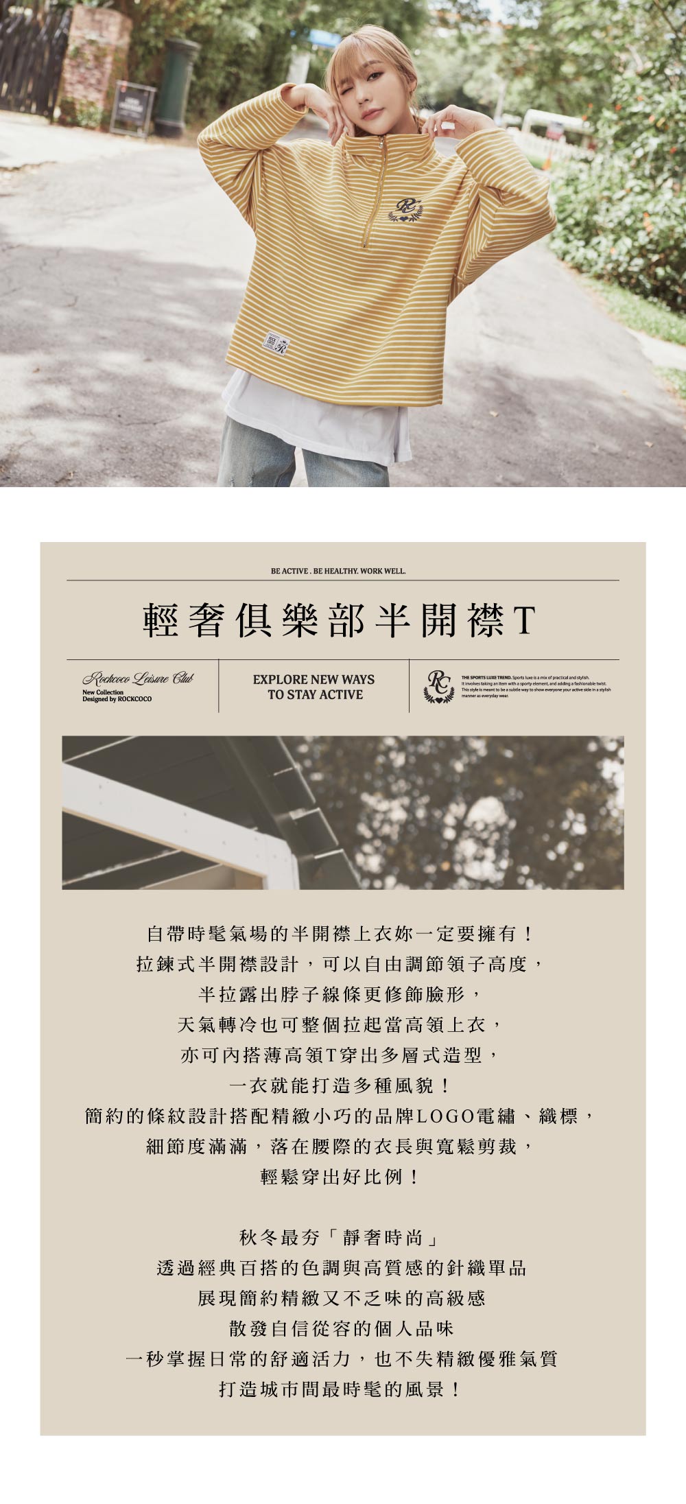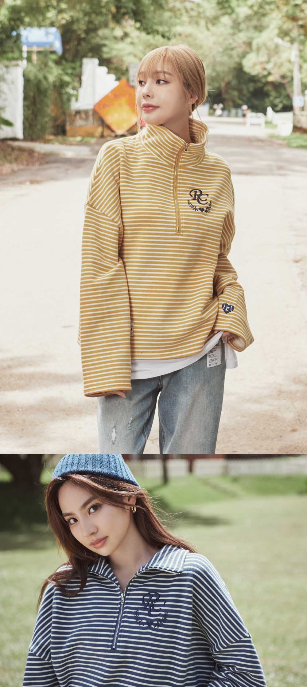 拉鍊式半開襟設計,可以自由調節領子高度,半拉露出脖子線條更修飾臉形,天氣轉冷也可整個拉起當高領上衣,亦可內搭薄高領T穿出多層式造型,一衣就能打造多種風貌!簡約的條紋設計搭配精緻小巧的品牌LOGO電繡、織標,細節度滿滿,落在腰際的衣長與寬鬆剪裁,輕鬆穿出好比例!