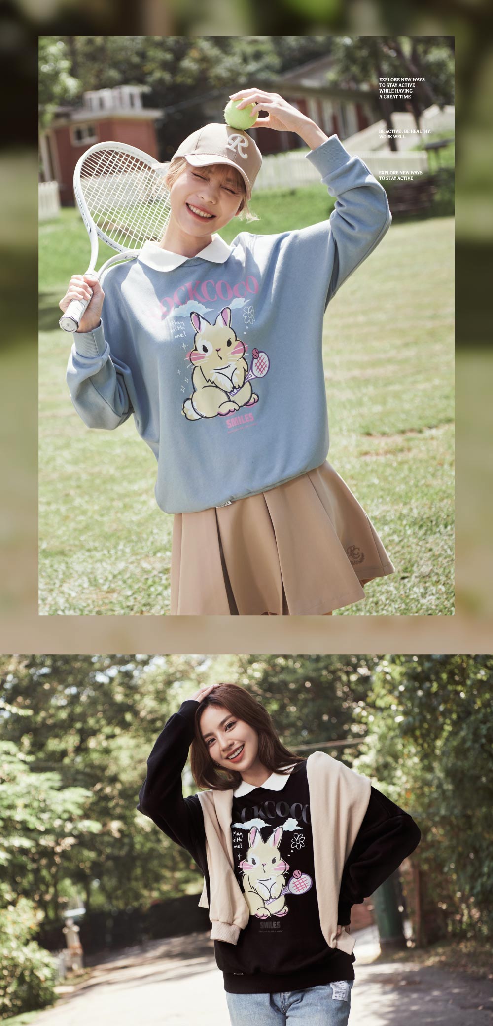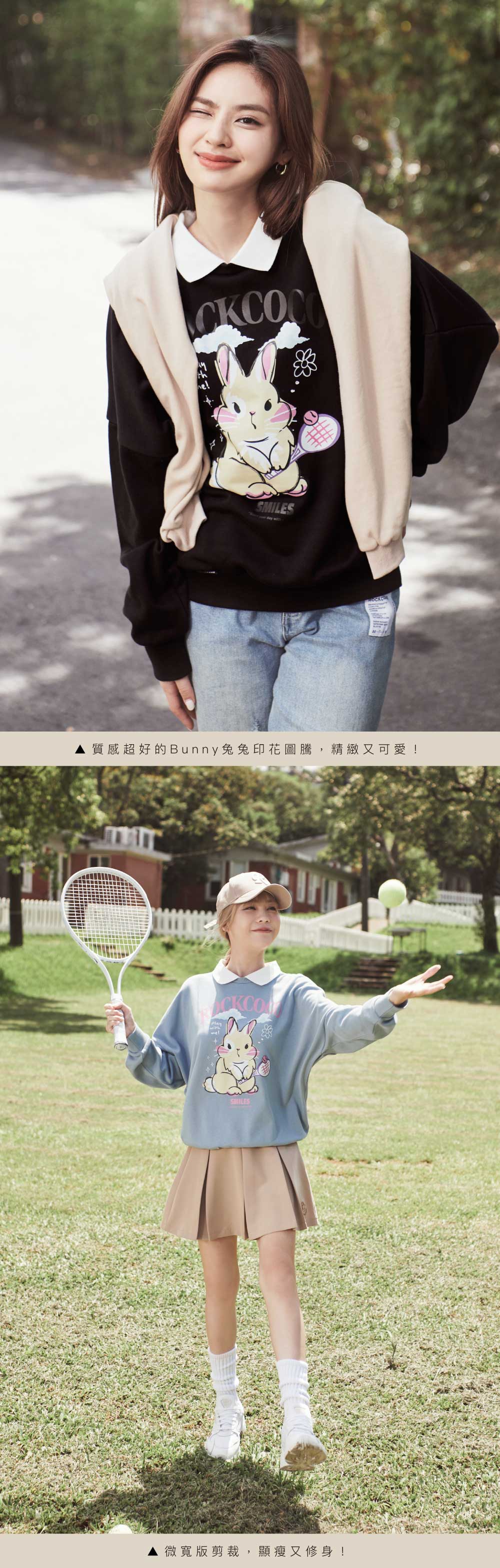 舒適的微寬版剪裁,加上學院感的拼接領口造型,一件就能穿出時尚的多層次風格!搭配長紗裙更顯妳的甜美可愛,也可以換上時尚寬褲,酷潮上街,穿百褶裙直接變身青春學院風。搭配質感超好的Bunny兔兔印花圖騰,精緻又可愛!