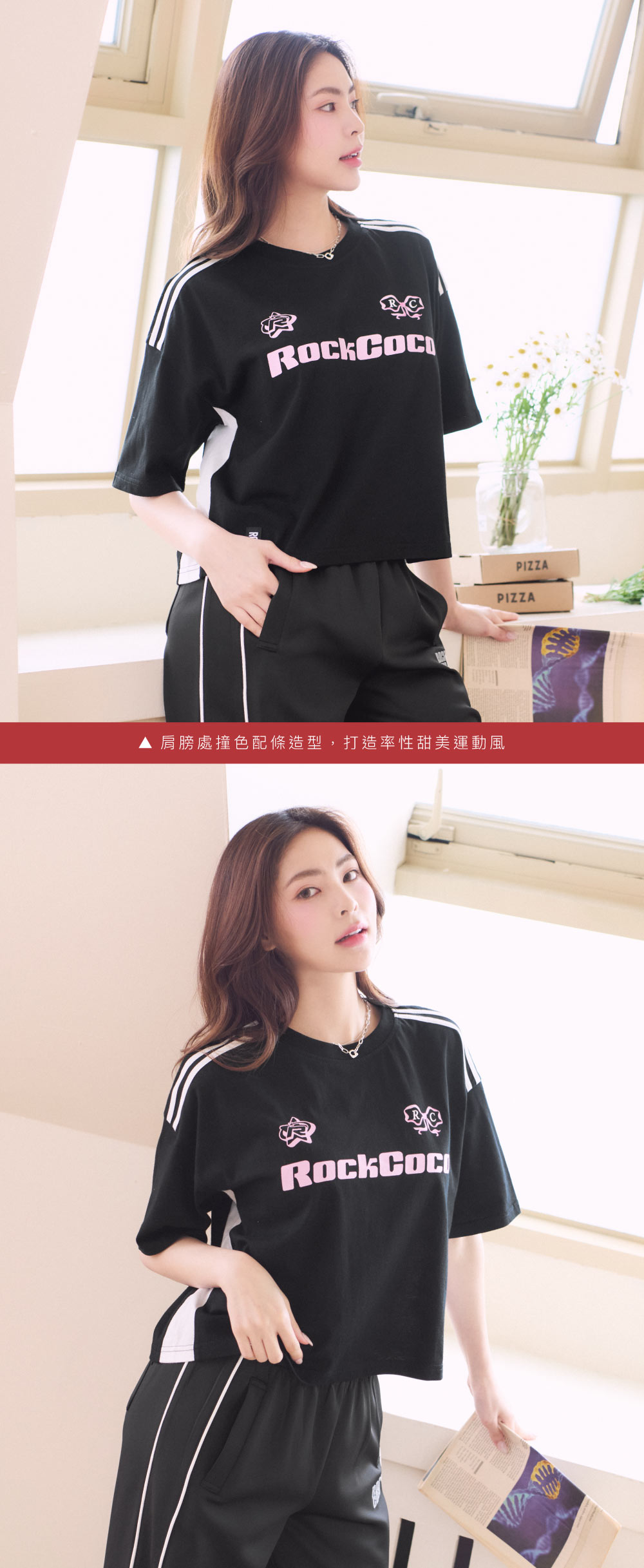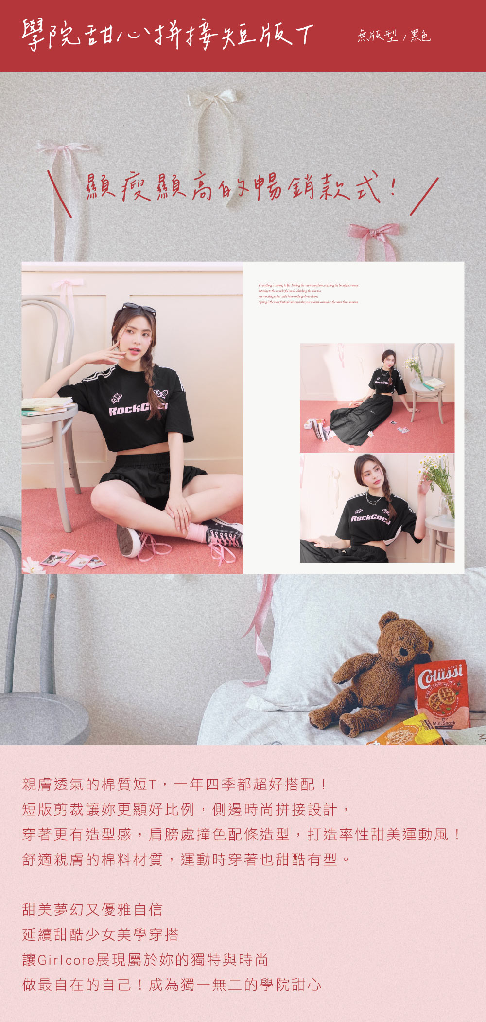 親膚透氣的棉質短T,一年四季都超好搭配!短版剪裁讓妳更顯好比例,側邊時尚拼接設計,穿著更有造型感,肩膀處撞色配條造型,打造率性甜美運動風!舒適親膚的棉料材質,運動時穿著也甜酷有型。