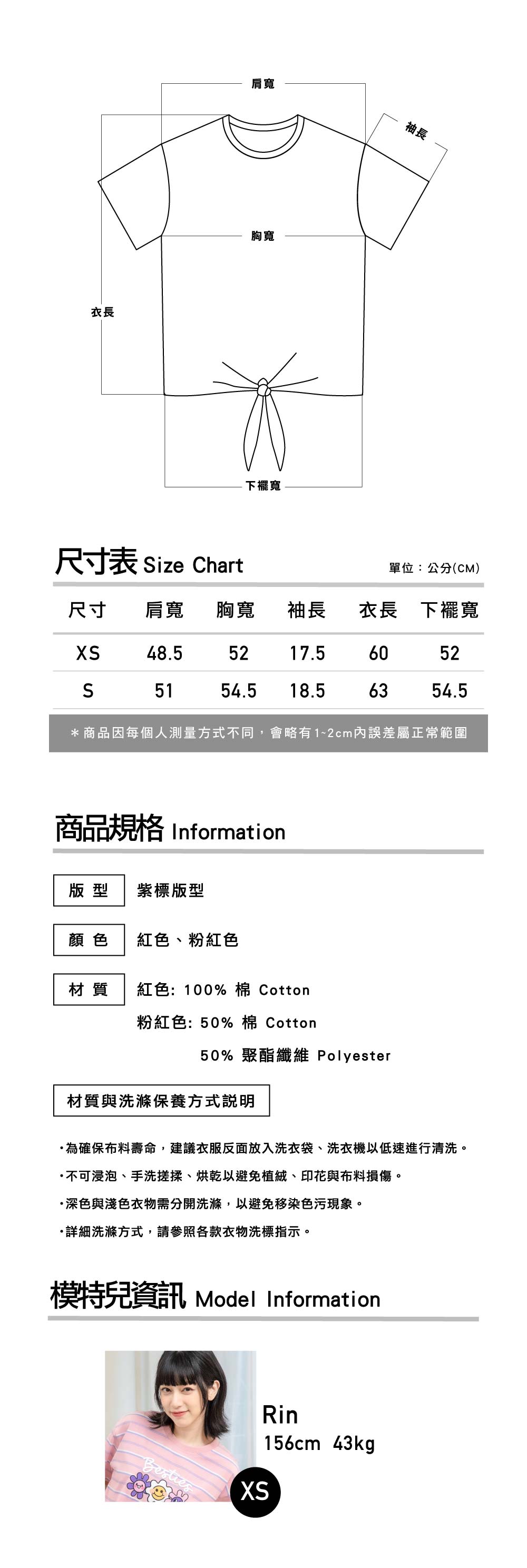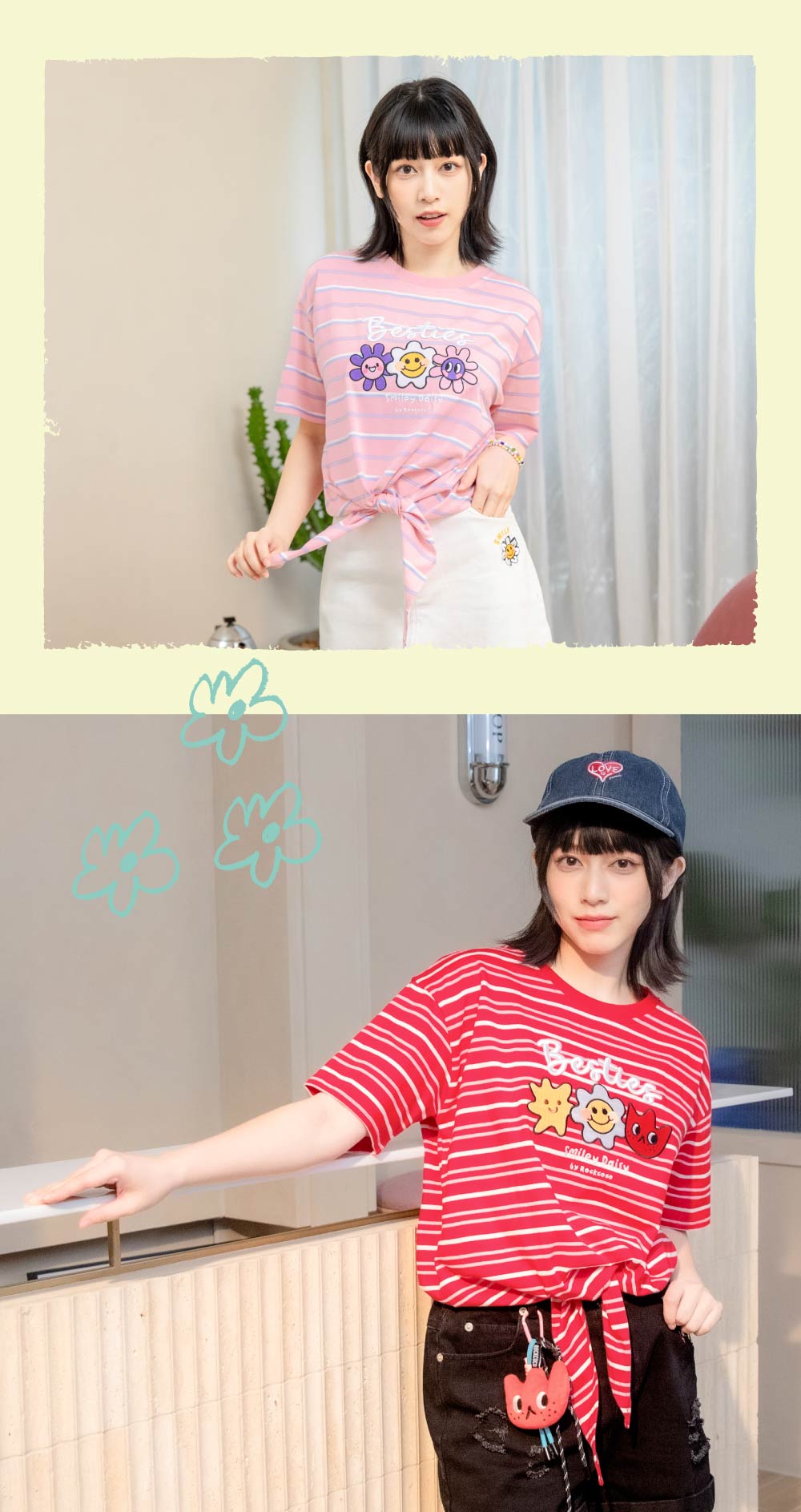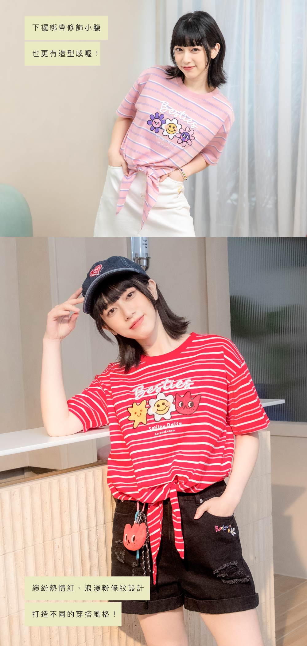 百搭條紋T也要加點繽紛色彩!熱情紅、浪漫粉,打造不同的穿搭風格!下襬綁帶設計,讓妳輕鬆綁起就能修飾微凸小腹