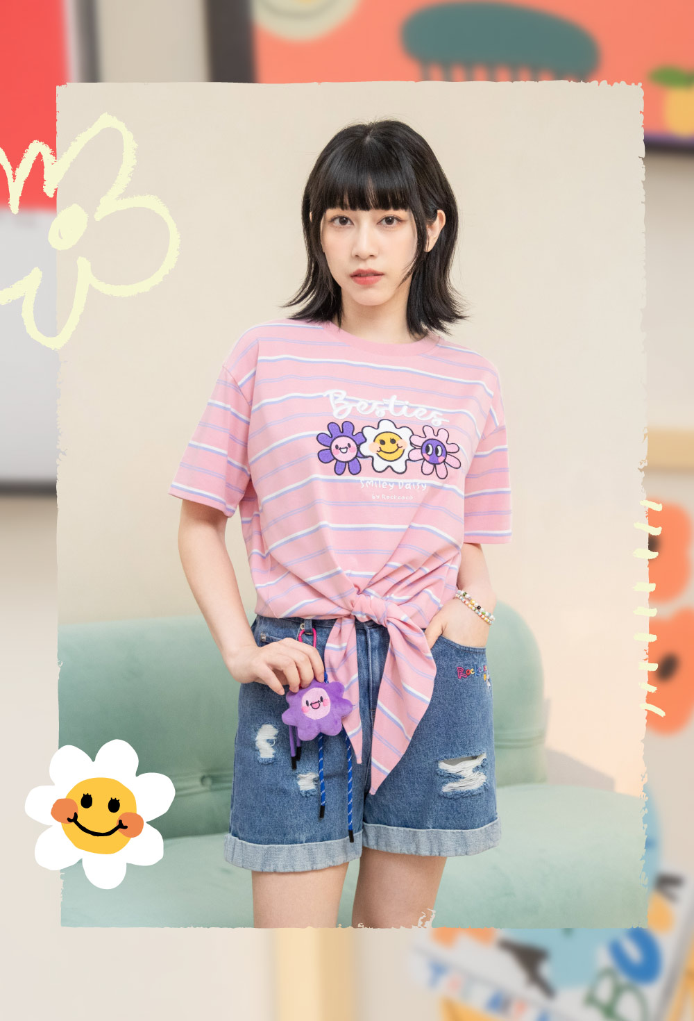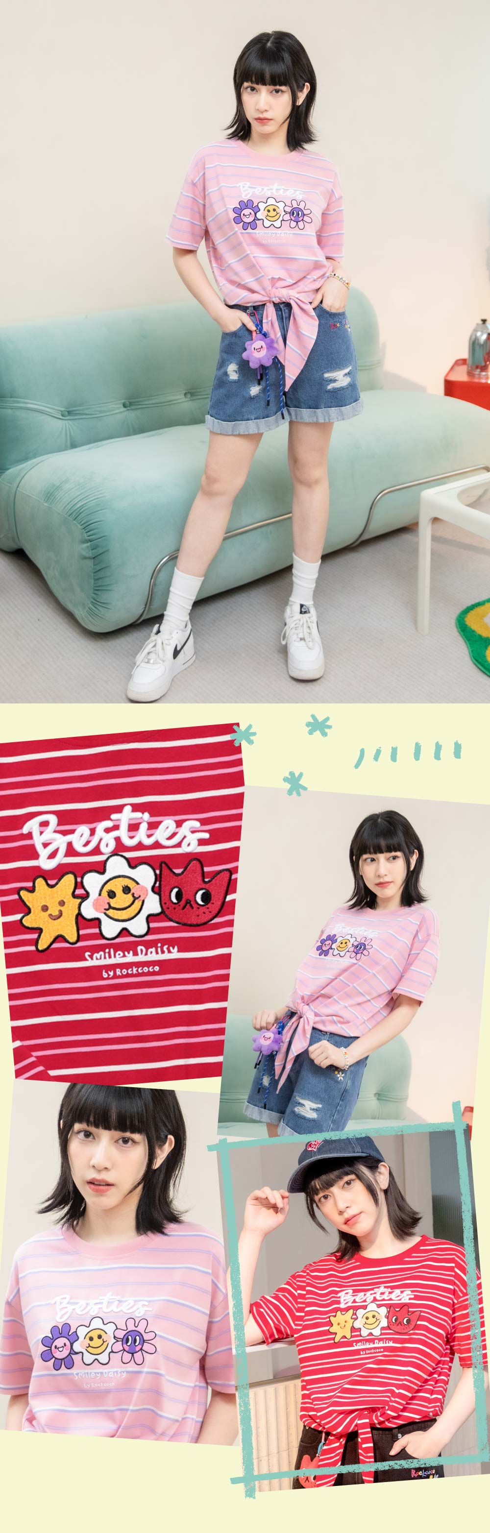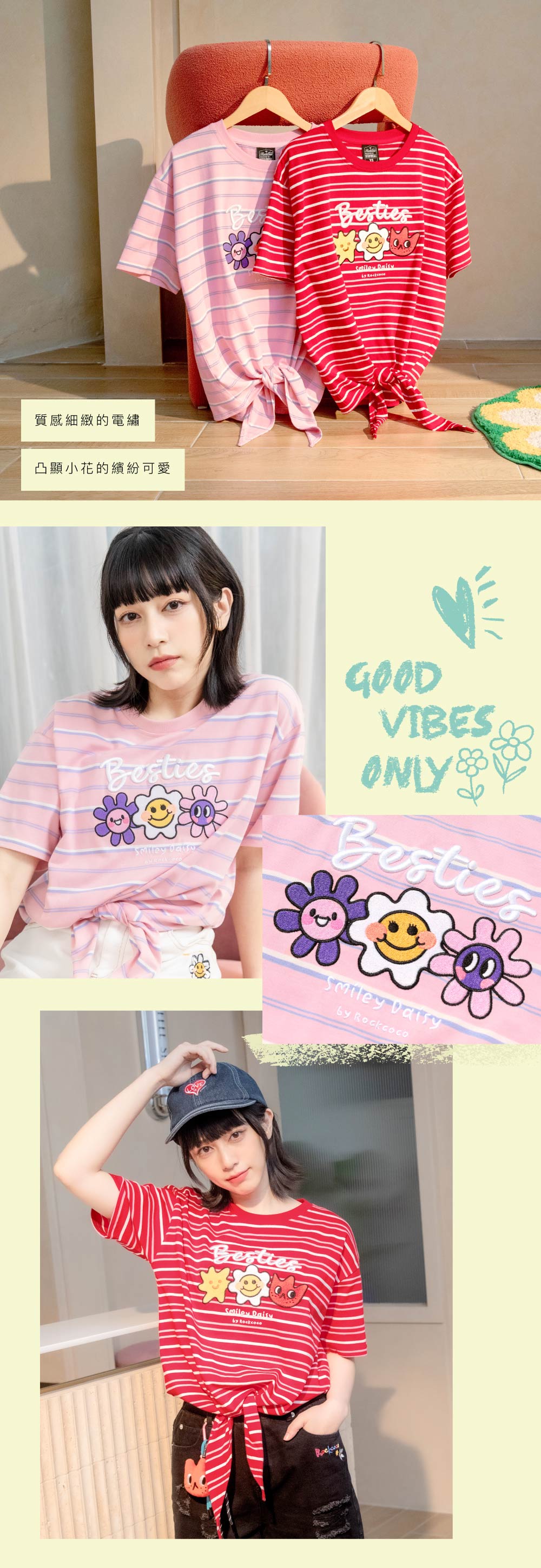 百搭條紋T也要加點繽紛色彩!熱情紅、浪漫粉,打造不同的穿搭風格!下襬綁帶設計,讓妳輕鬆綁起就能修飾微凸小腹