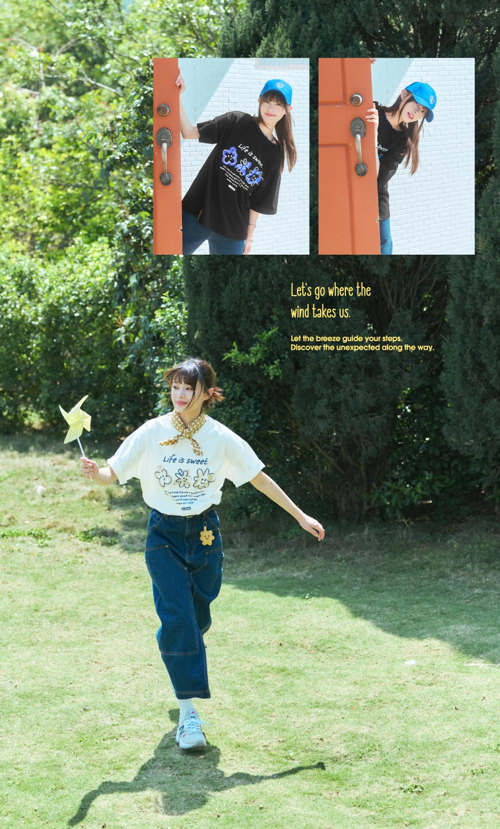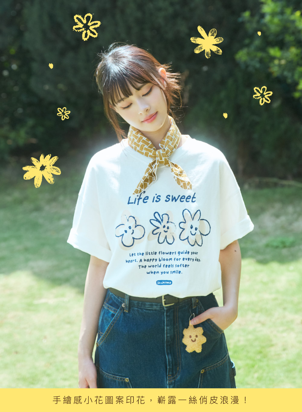 手感柔軟細緻的棉料材質,不刺不癢、親膚舒適,換季時搭配背心、外套打造多層次搭配,輕鬆穿出又甜又酷的風格!手繪感小花圖案印花,嶄露一絲俏皮浪漫!