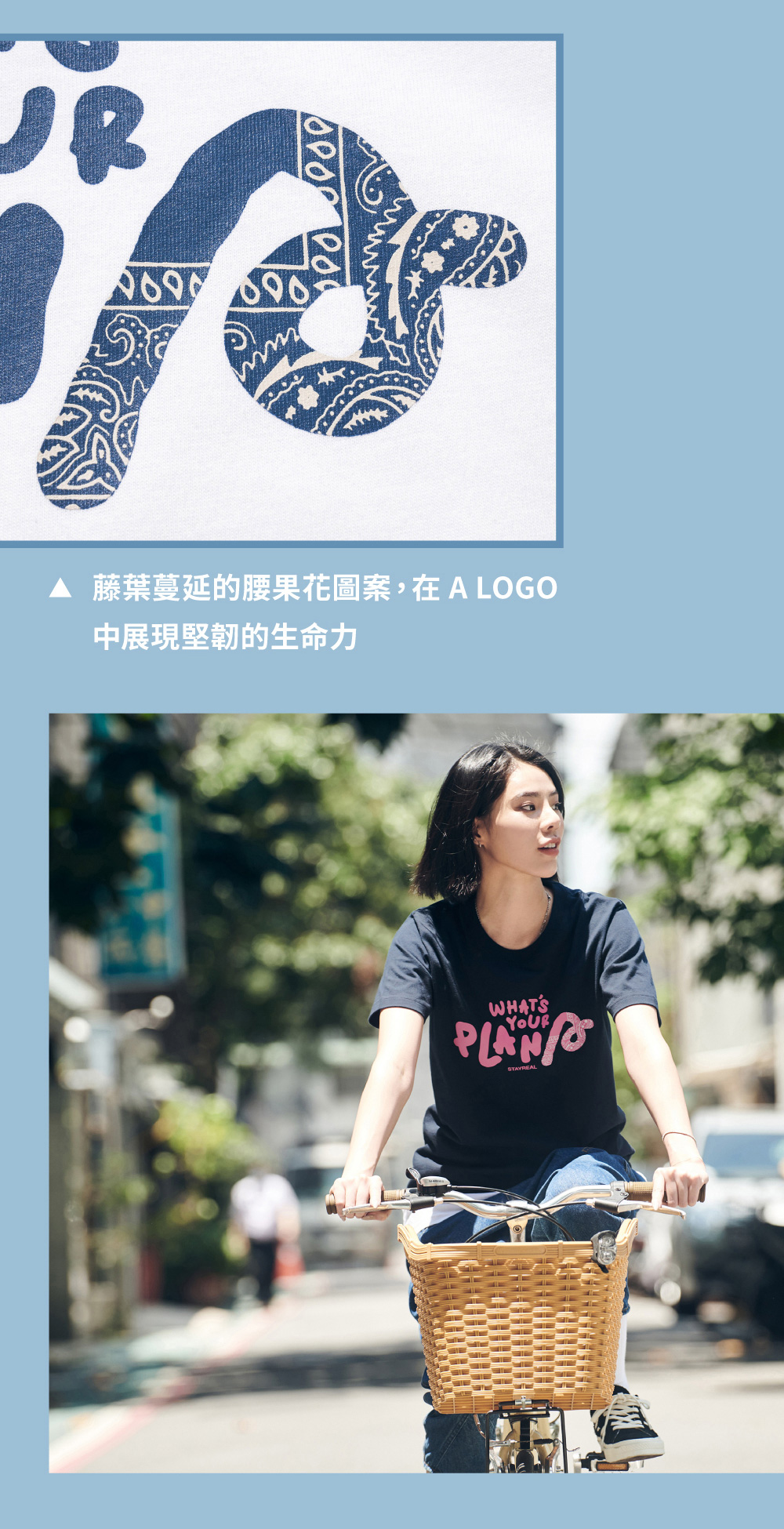 「What's your PLAN A」的精神標語 x 腰果花的圖紋搭配,象徵開創出專屬於”你的PLAN A”的繁花盛開之路