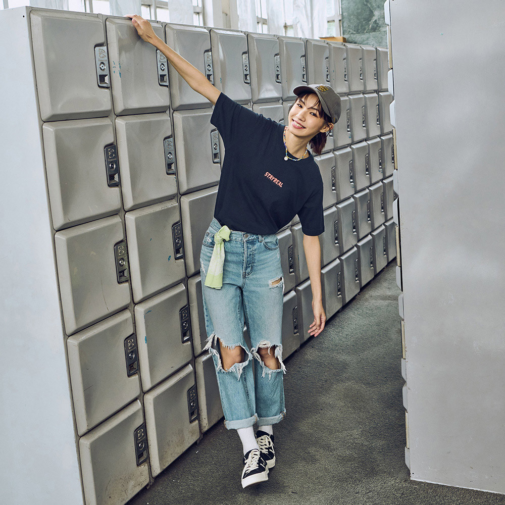 羅紋領口收邊,袖口可以反折製造俐落的效果
