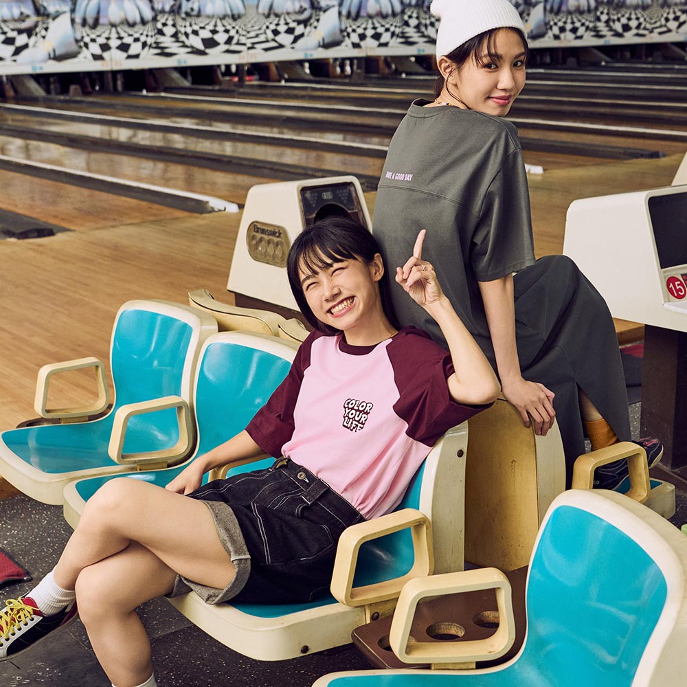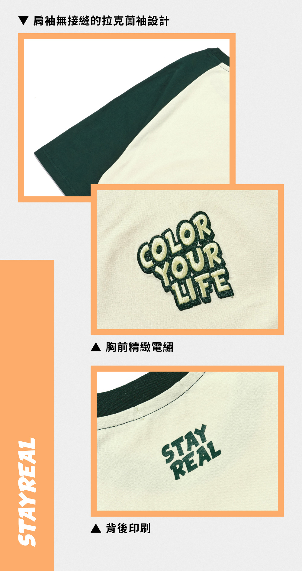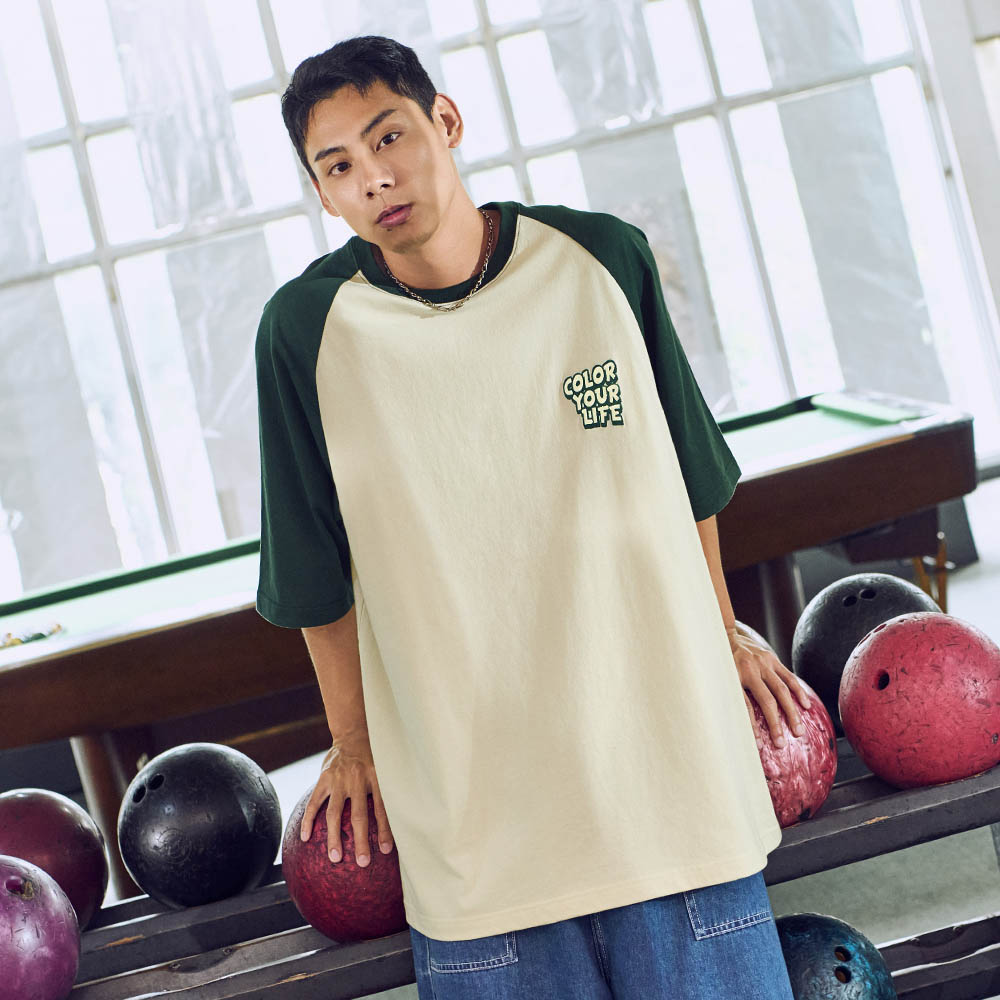 羅紋圓領設計簡潔百搭,拉克蘭袖落肩設計顯瘦感UP,領口羅紋&袖子撞色效果製造時髦造型感