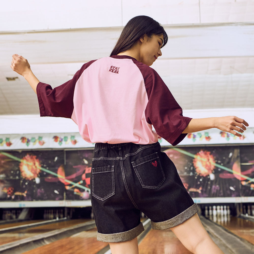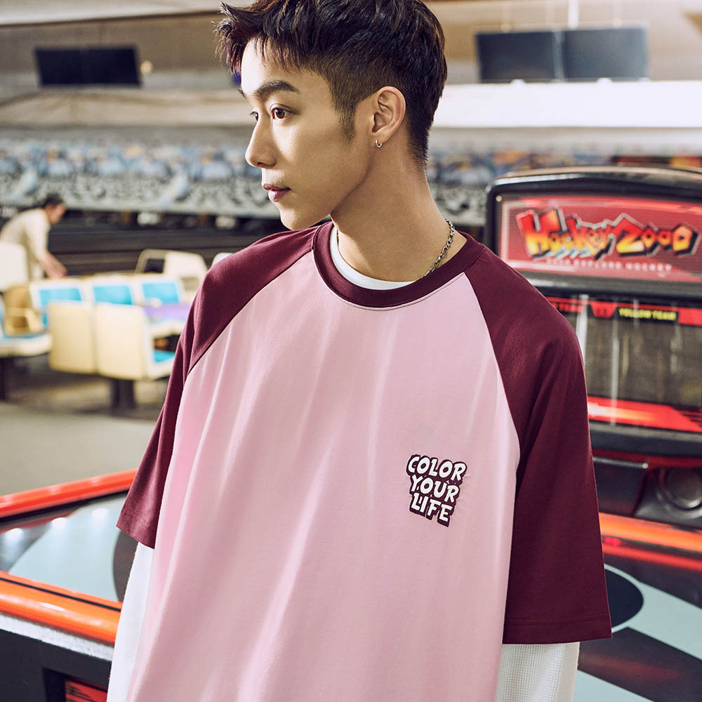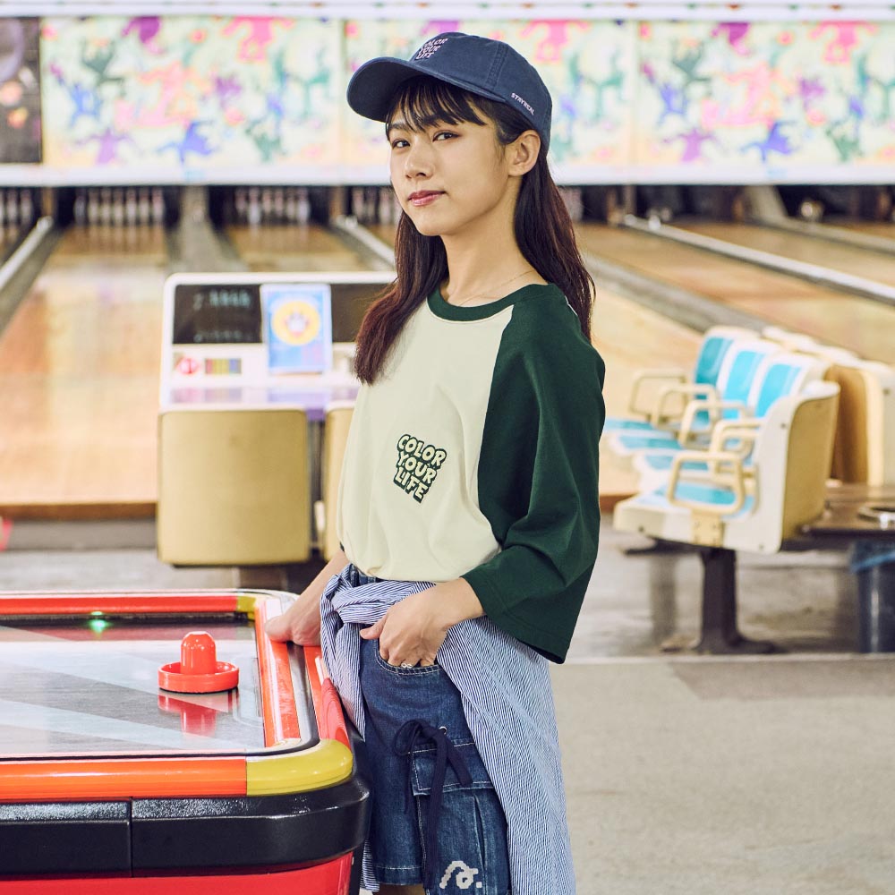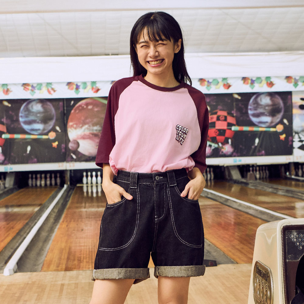羅紋圓領設計簡潔百搭,拉克蘭袖落肩設計顯瘦感UP,領口羅紋&袖子撞色效果製造時髦造型感