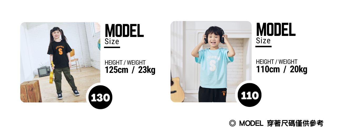 新Kids版型,此系列特別開展110-140cm共4個碼段,也因應各年齡層小朋友穿著