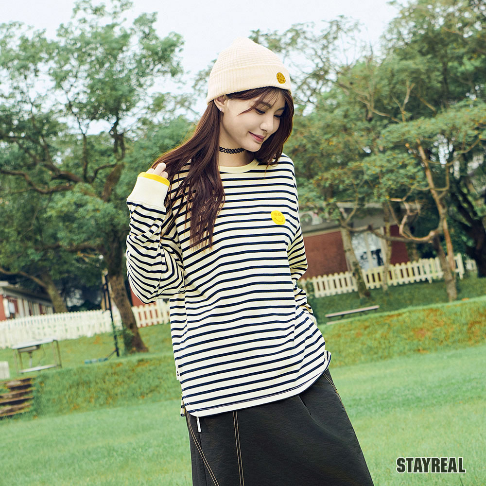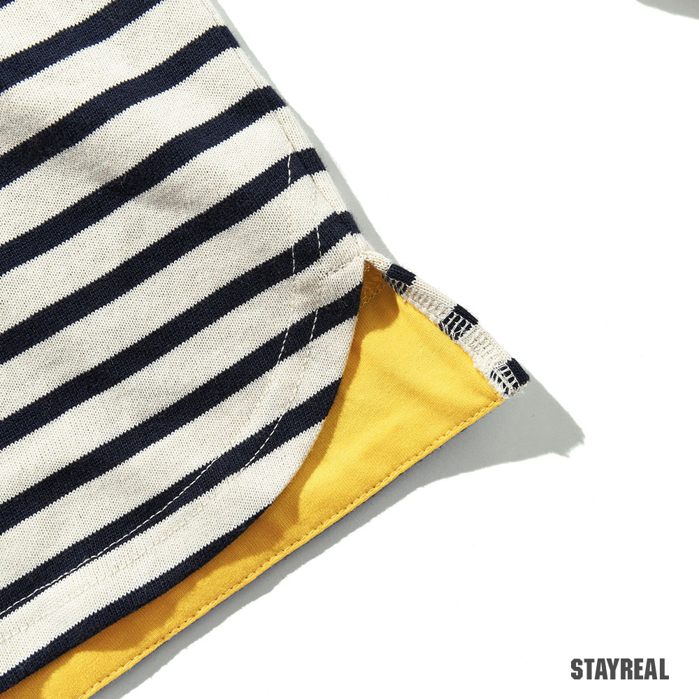 領口/袖口精緻配色羅紋、下襬內裡配色平織布、前片下襬圓弧造型設計
