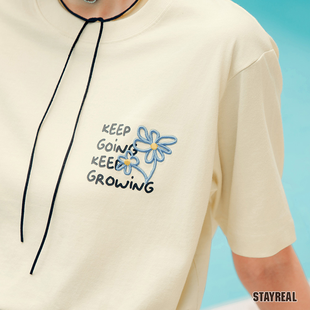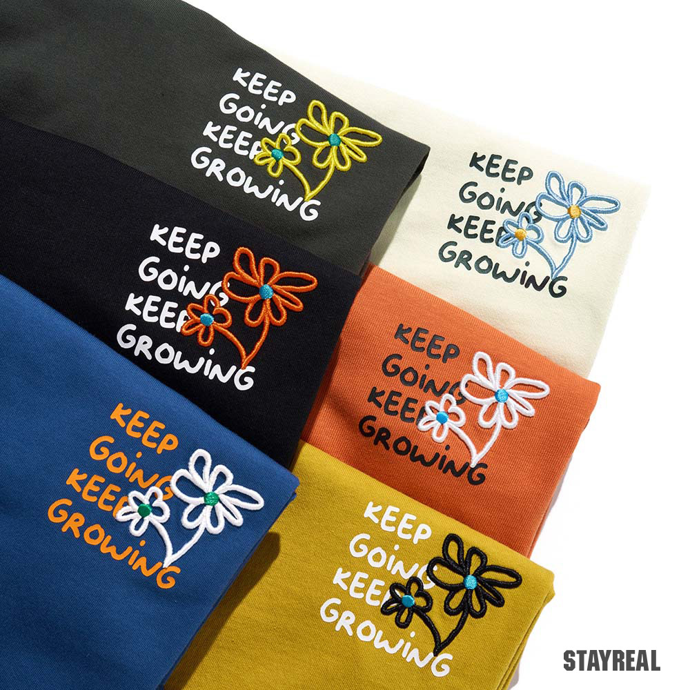 希望透過洋甘菊溫暖的夏日小太陽,讓每個人面對任何情況,都能像標語KEEP GOING KEEP GROWING一起活出自己想要的樣子!一起向前大步邁進吧!