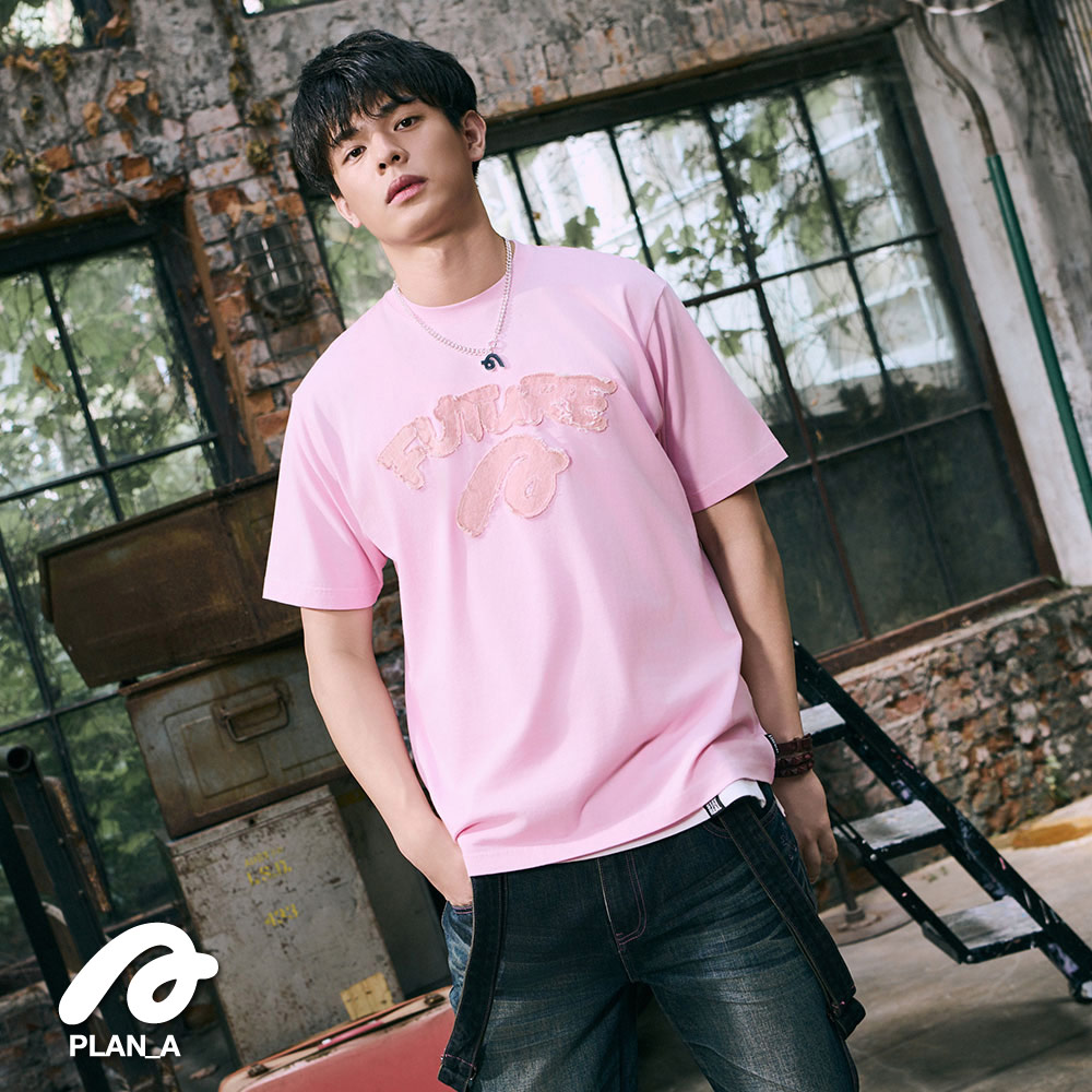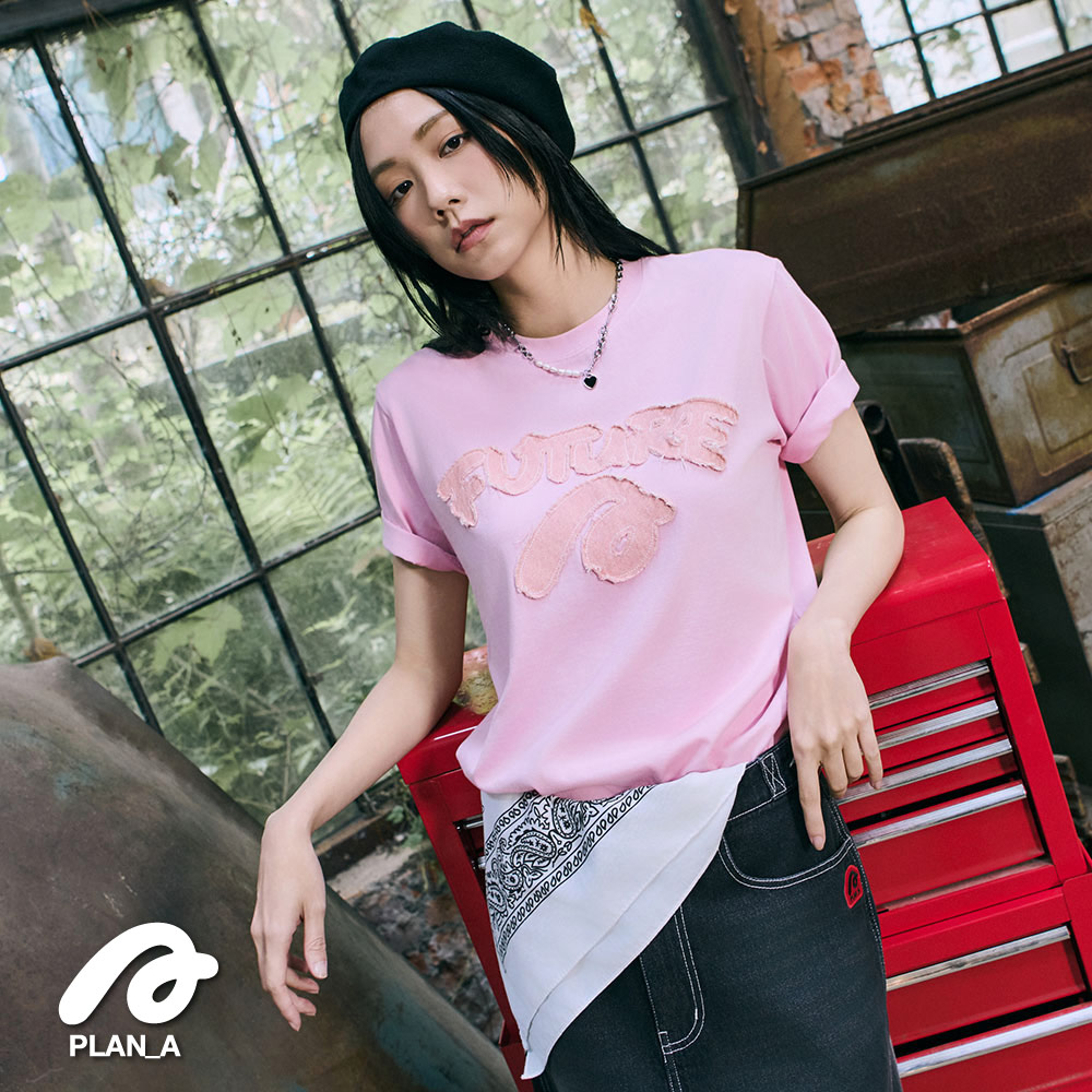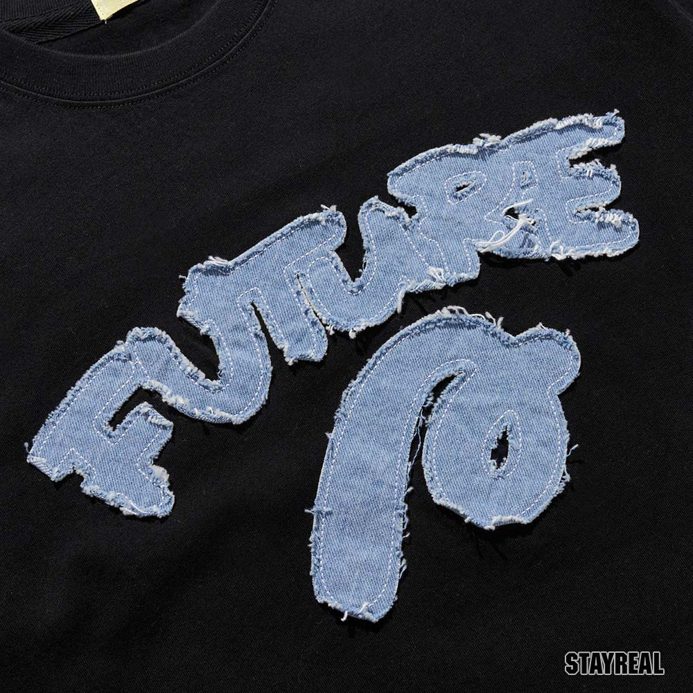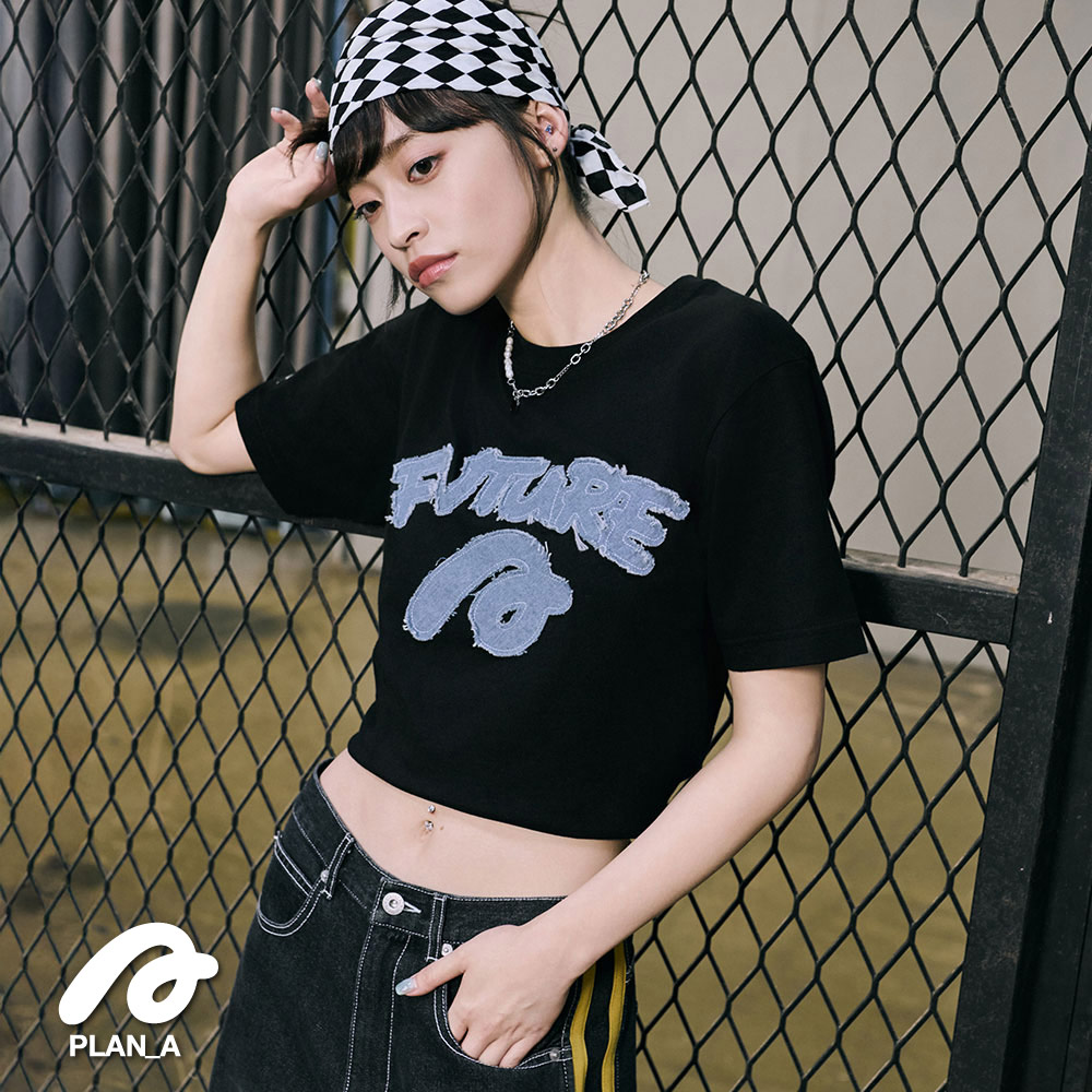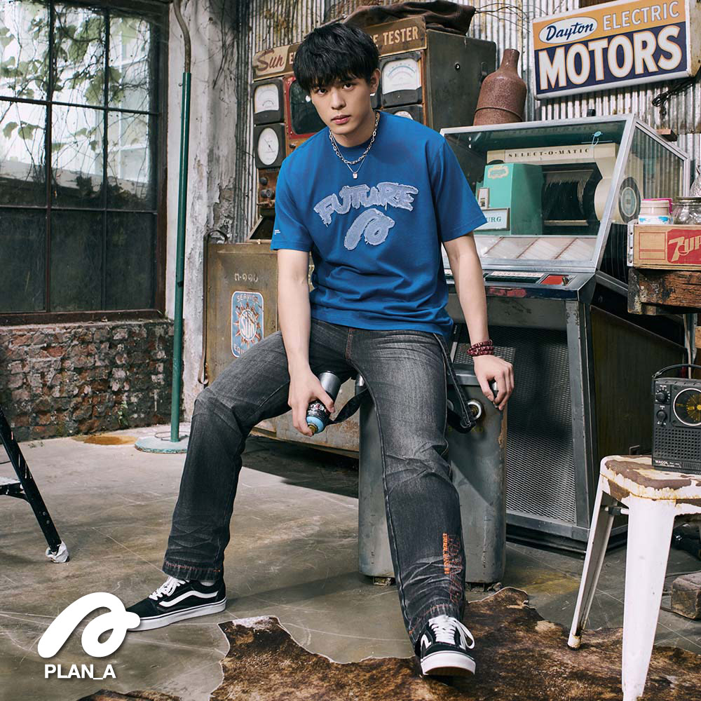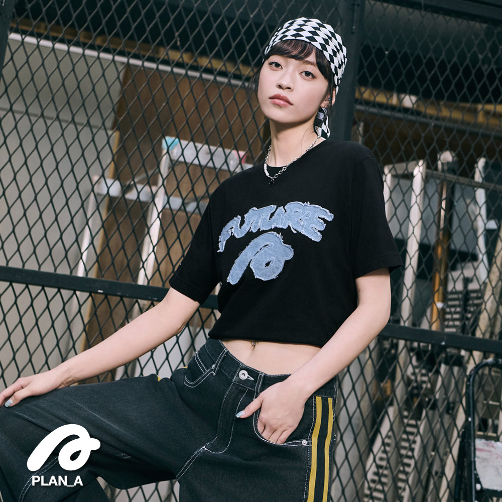 FUTURE A的丹寧拼布設計,呈現特殊水洗的布鬚工藝巧思!是每年春夏PLAN A 必推出的經典LOGO T的進化再升級版