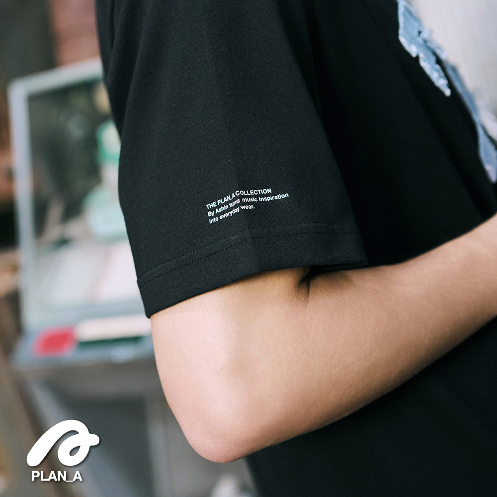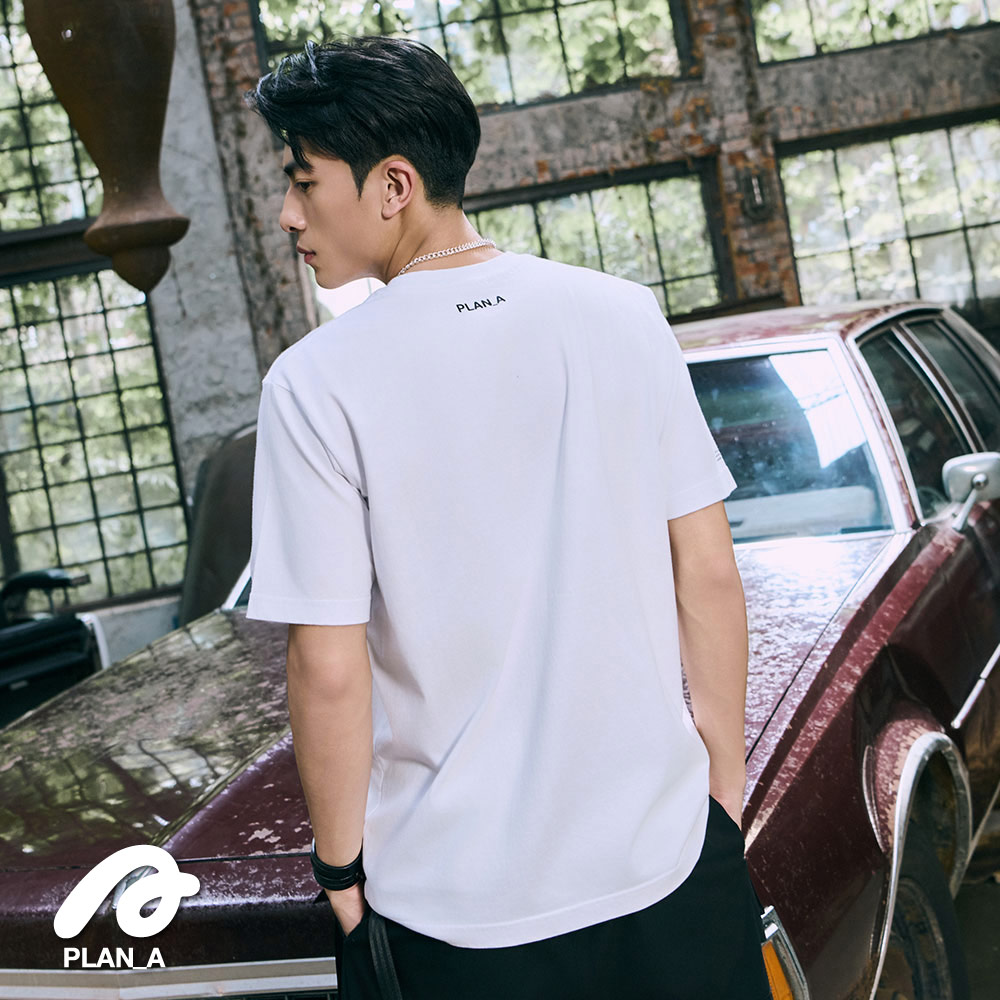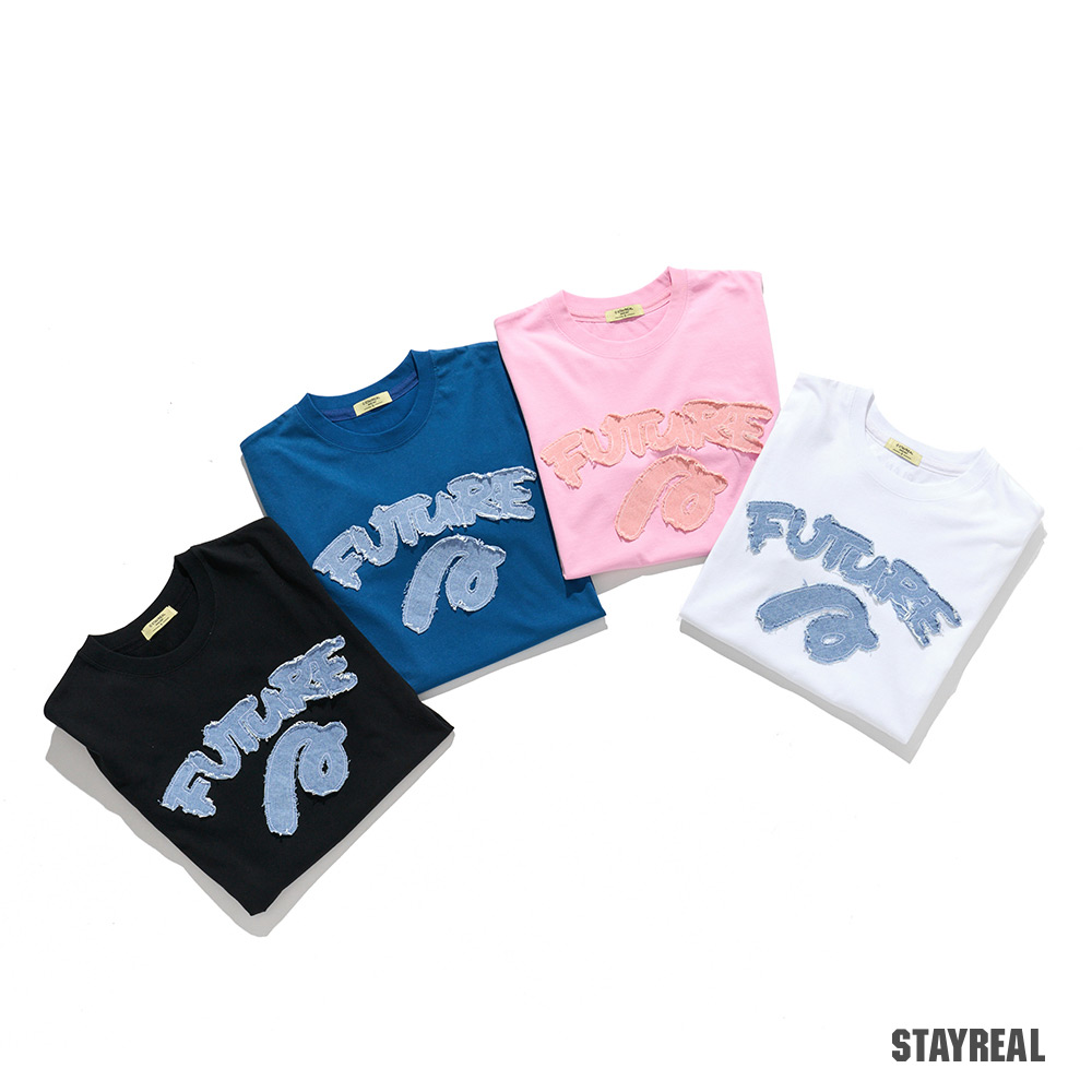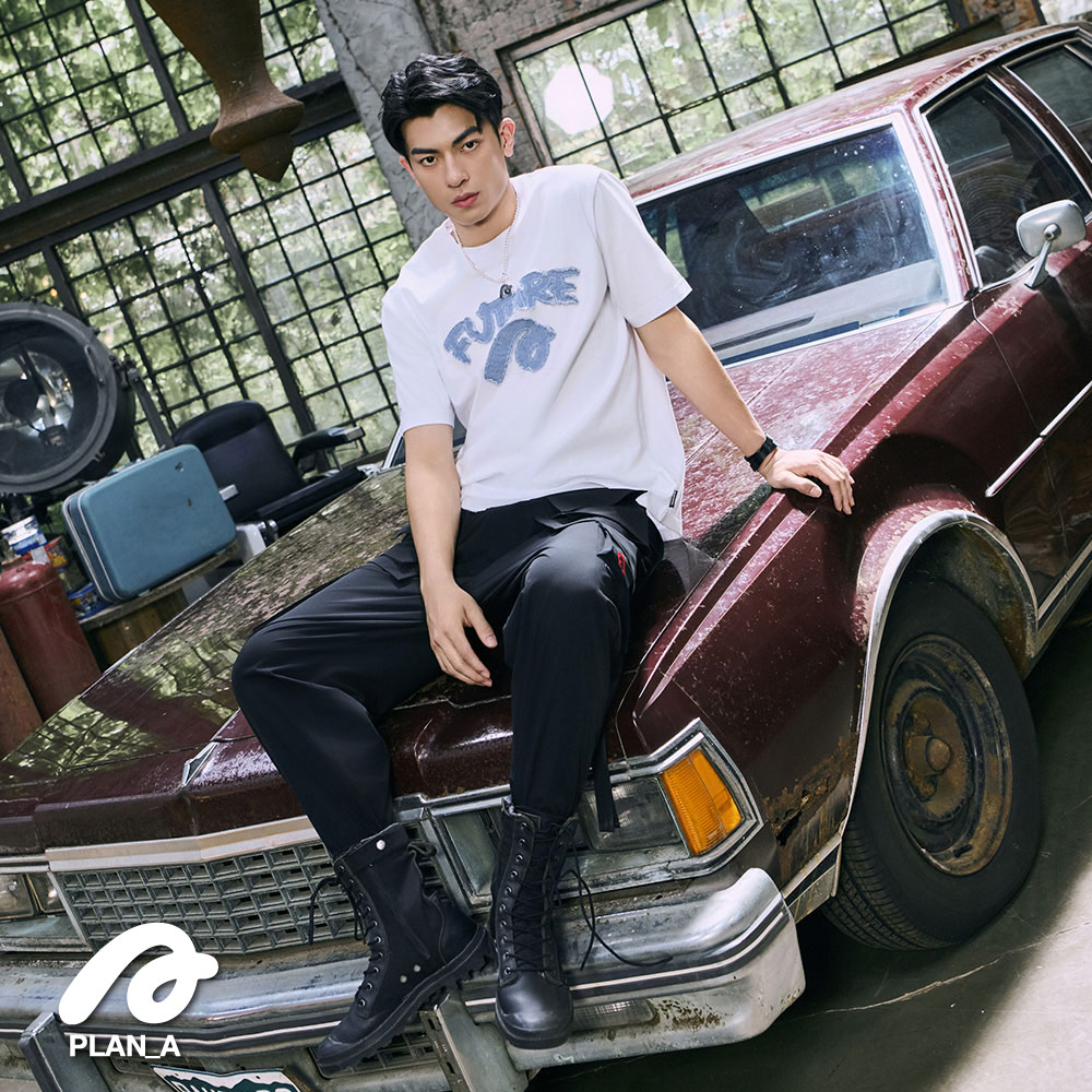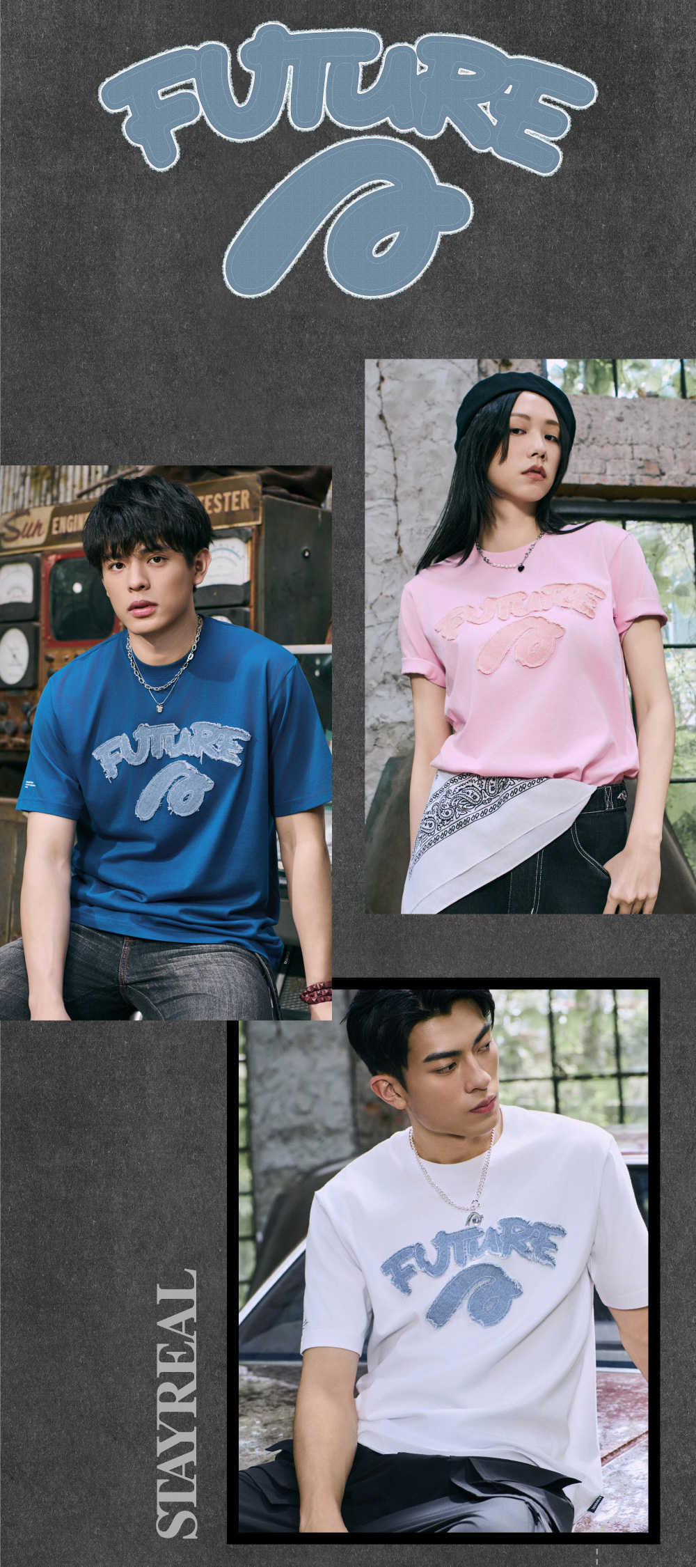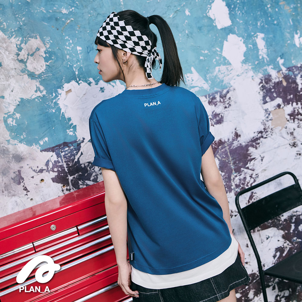 FUTURE A的丹寧拼布設計,呈現特殊水洗的布鬚工藝巧思!是每年春夏PLAN A 必推出的經典LOGO T的進化再升級版