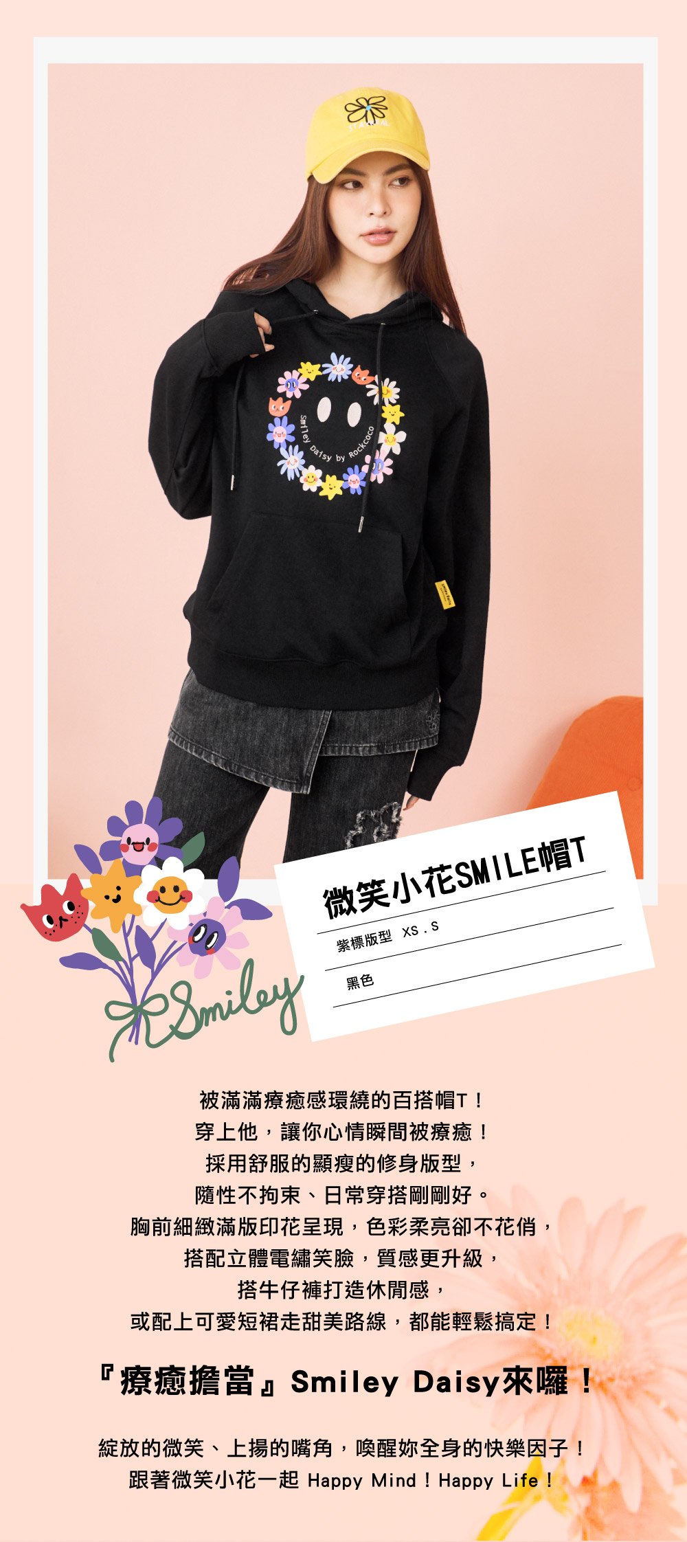 被滿滿療癒感環繞的百搭帽T!穿上他,讓你心情瞬間被療癒!採用舒服的顯瘦的修身版型,隨性不拘束、日常穿搭剛剛好。胸前細緻滿版印花呈現,色彩柔亮卻不花俏,搭配立體電繡笑臉,質感更升級,搭牛仔褲打造休閒感,或配上可愛短裙走甜美路線,都能輕鬆搞定!