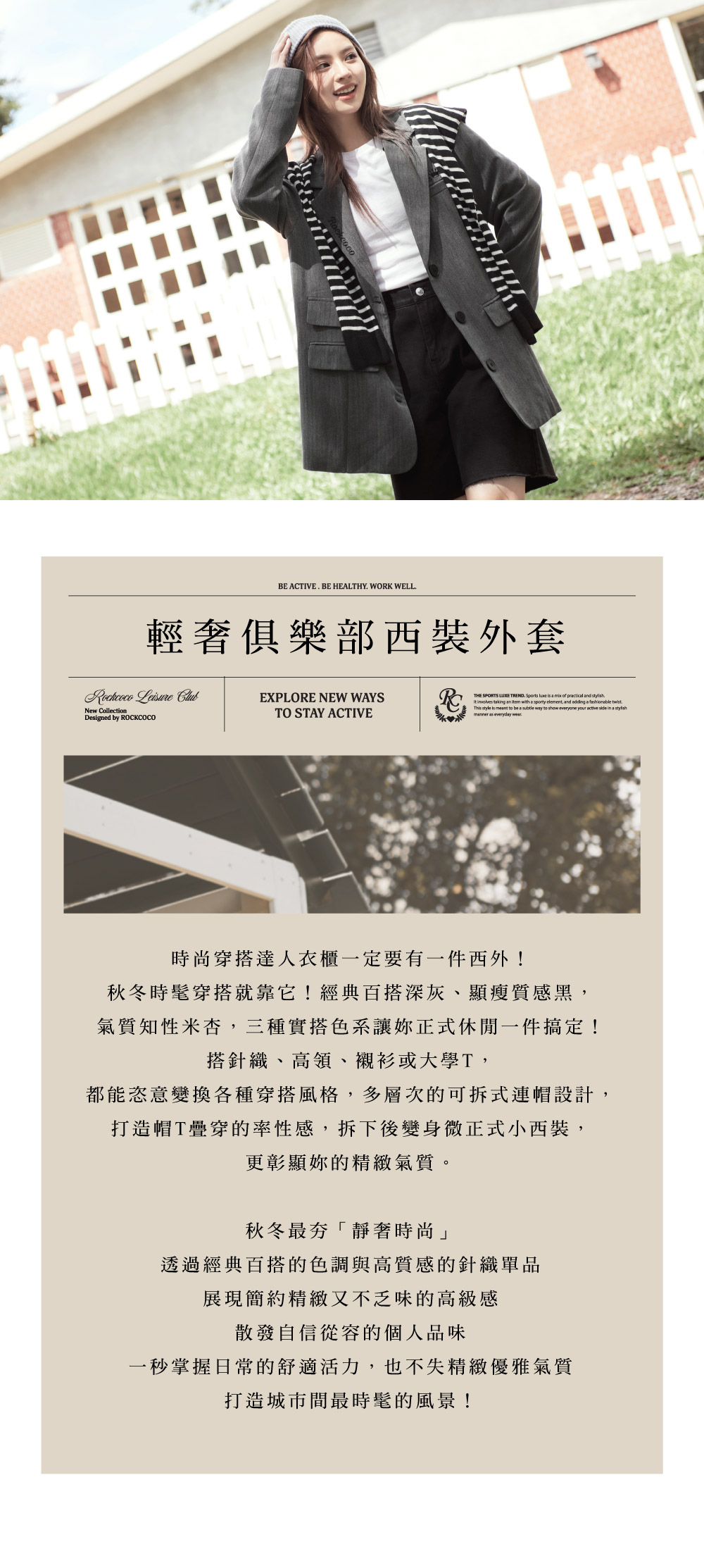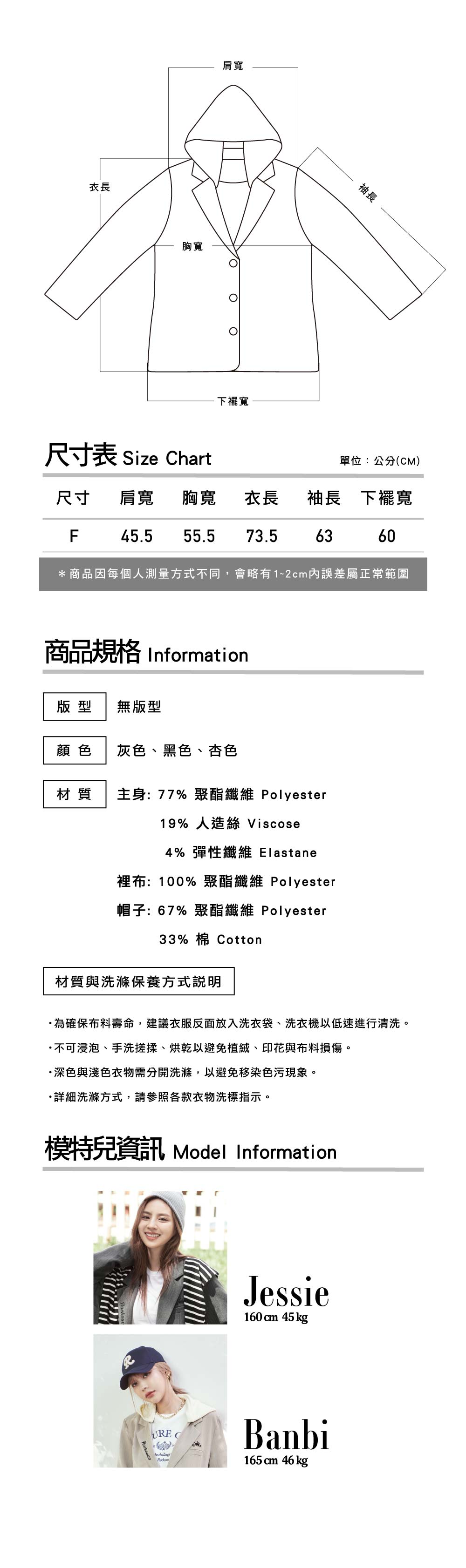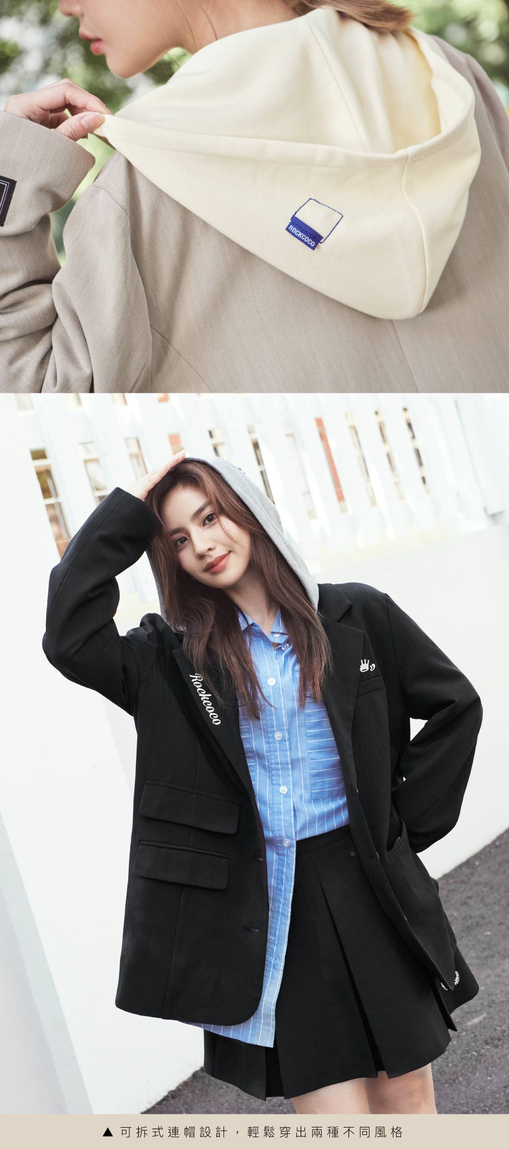 秋冬時髦穿搭就靠它!經典百搭深灰、顯瘦質感黑,氣質知性米杏,三種實搭色系讓妳正式休閒一件搞定!搭針織、高領、襯衫或大學T,都能恣意變換各種穿搭風格,多層次的可拆式連帽設計,打造帽T疊穿的率性感,拆下後變身微正式小西裝,更彰顯妳的精緻氣質。