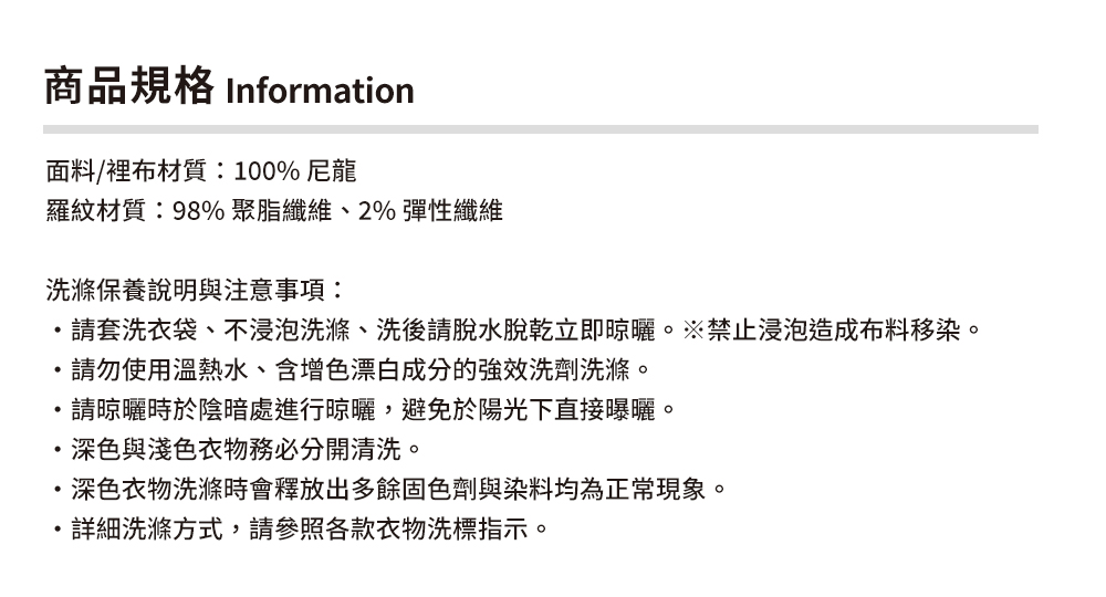 使用高品質尼龍材質,面料上做了三防科技處理,具有防水、防汙、防油等效果,同時保持穿著的舒適度及面料的穩定性