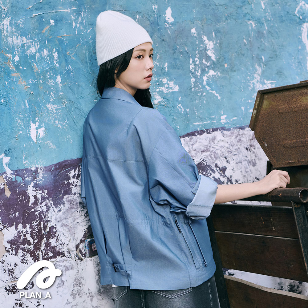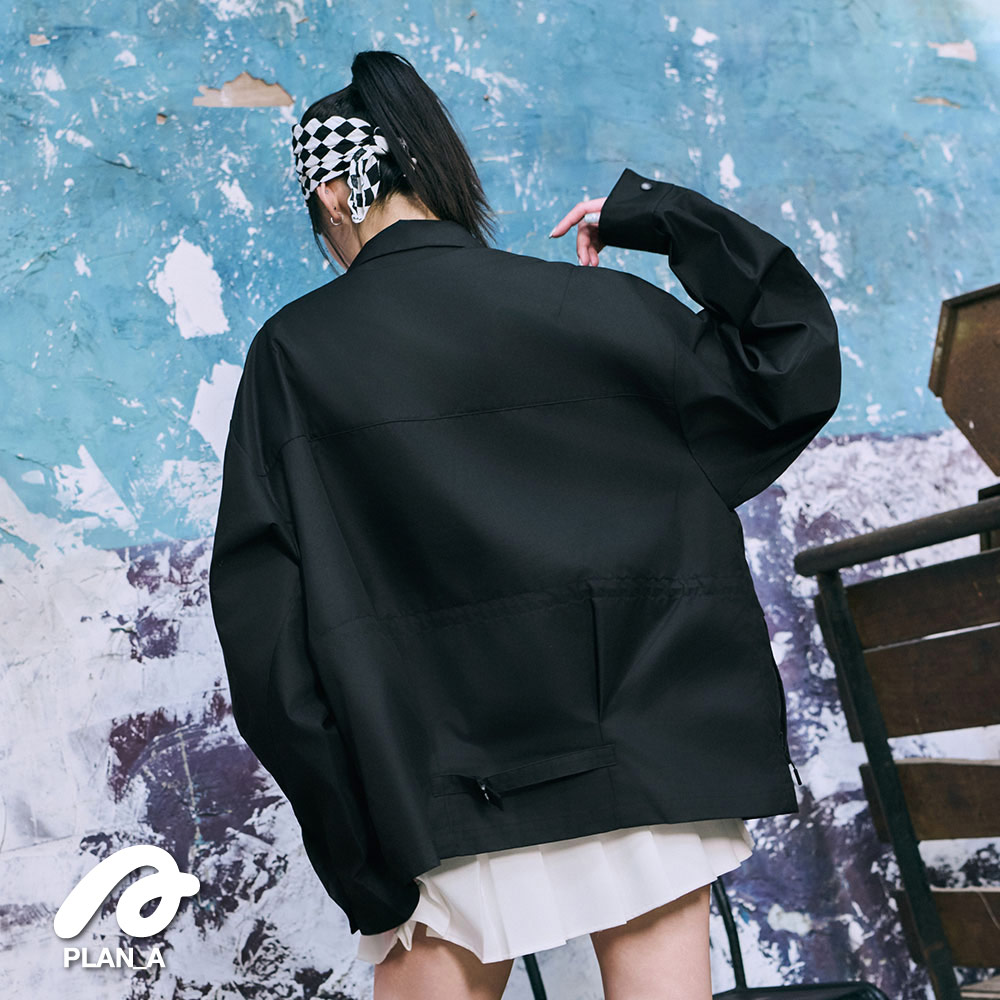 翻領設計,內裡採用網眼布,增加舒適與透氣性,以按釦做為開合,內後腰處配置彈性繩與調節釦,可變化不同輪廓