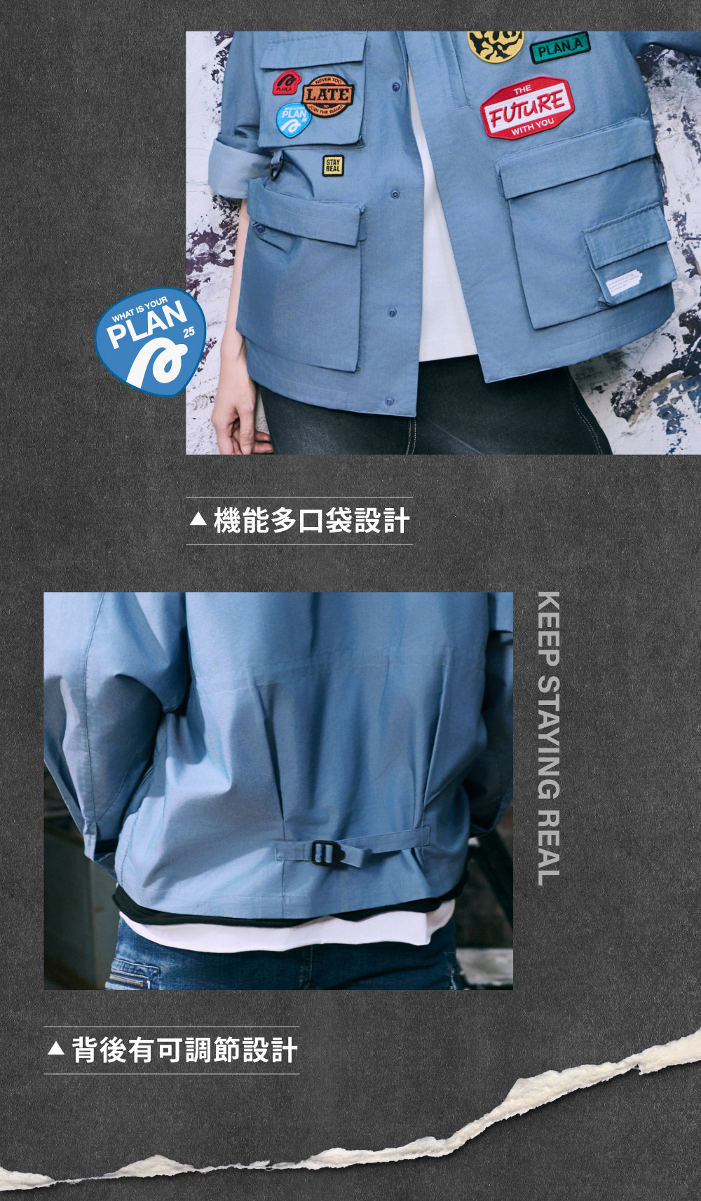 胸口,兩側,下擺處共7個口袋,工裝感與實用性兼具
