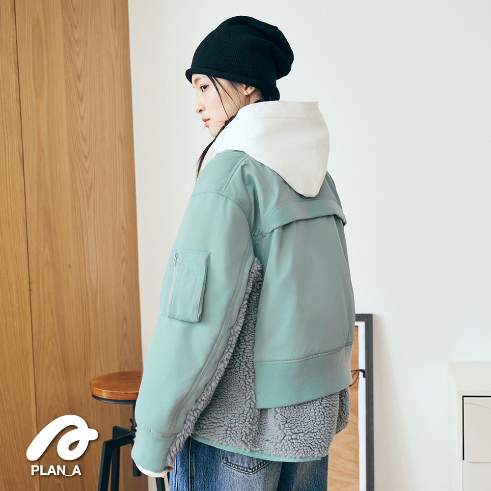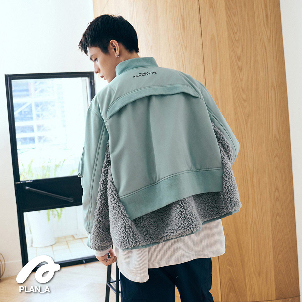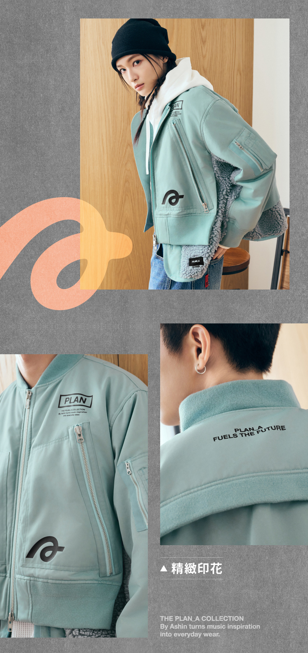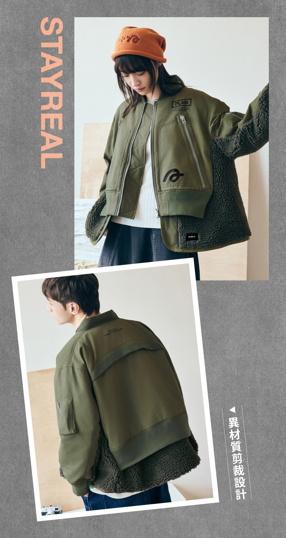 左手臂上的筆插袋巧妙融入MA1元素,同布色系羅紋運用在領片,袖口與下擺,增加防風與保暖機能,讓整體質感更完整
