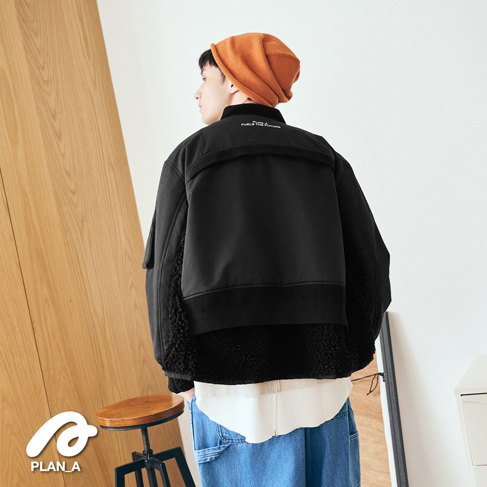 拼接手感厚實的羊羔絨材質,絨毛密實具有卓越的保暖性