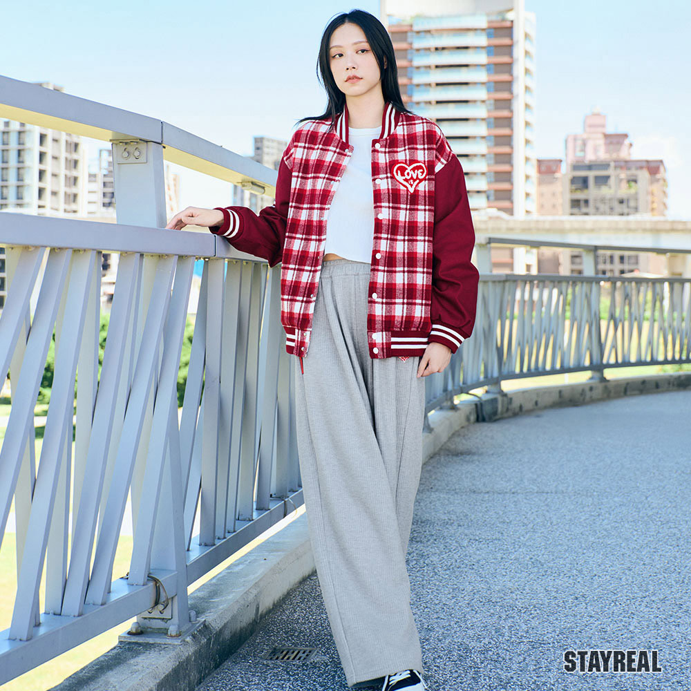 質感混紡格紋毛呢布料搭配素色斜紋面料&配條羅紋