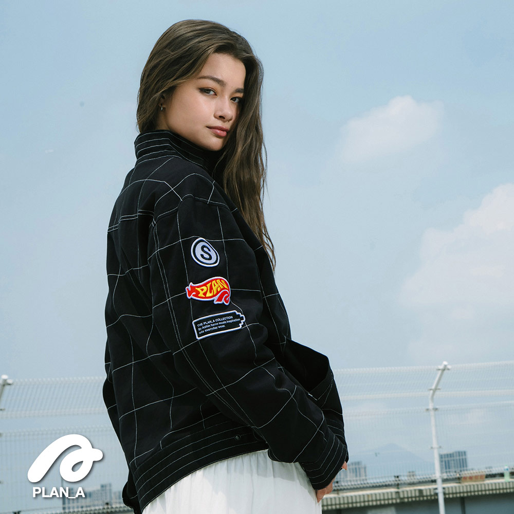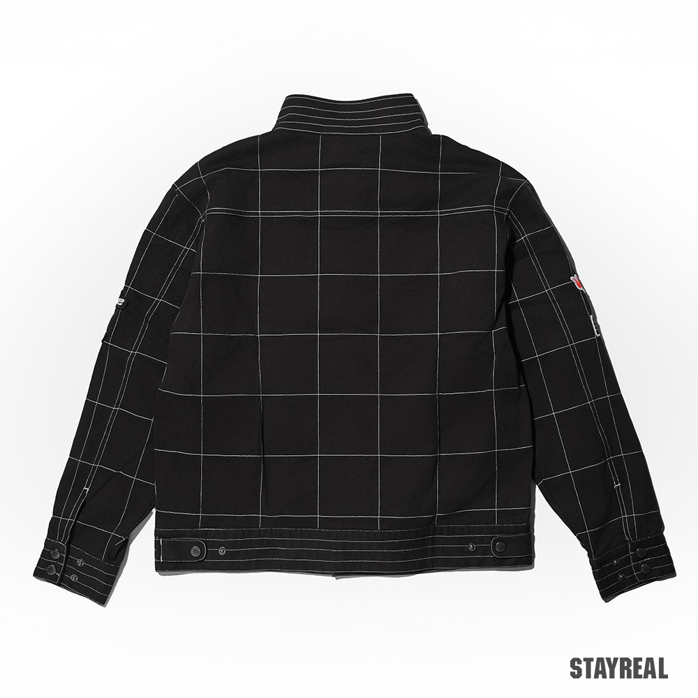 兩側脇插袋增加實用性,整件格紋壓線讓外觀更具時尚感