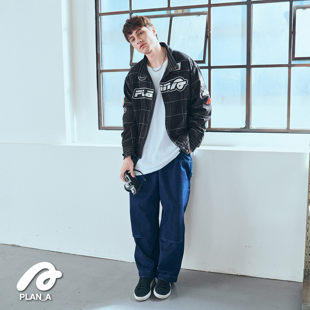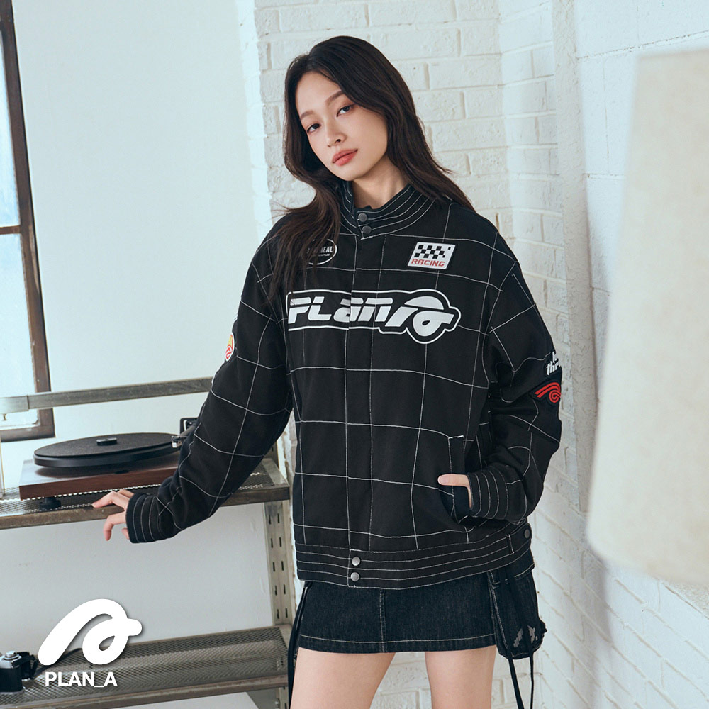 兩側脇插袋增加實用性,整件格紋壓線讓外觀更具時尚感