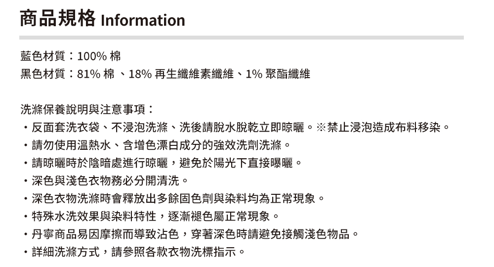 特選丹寧面料製成,布性厚實舒適,帶有自然挺度