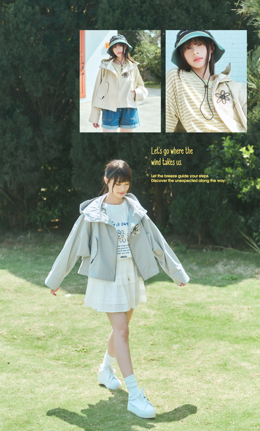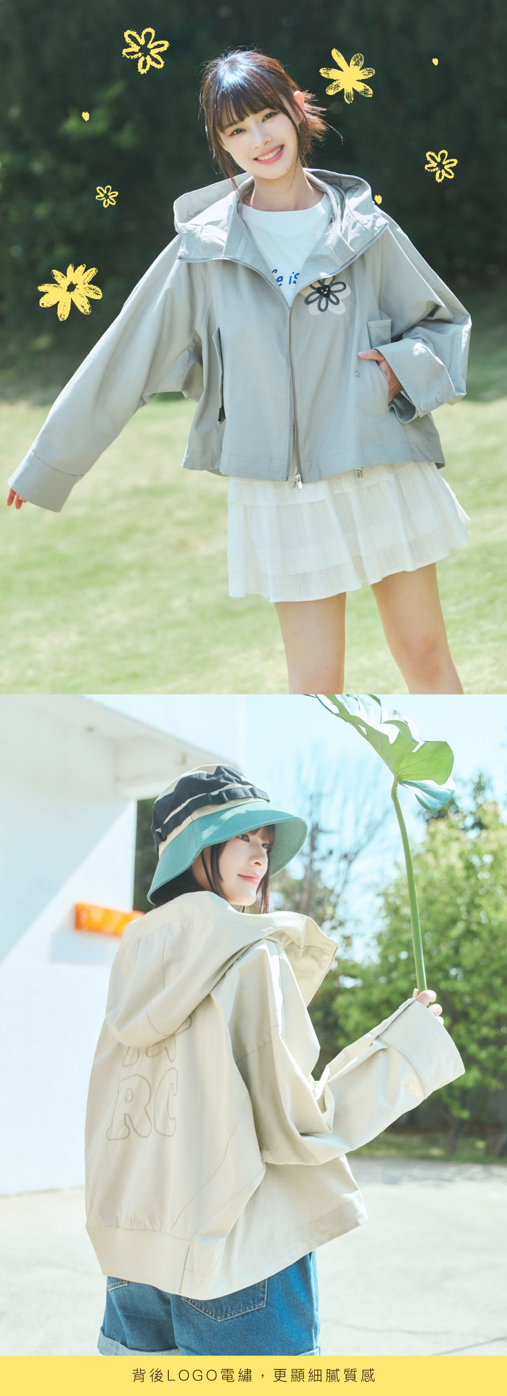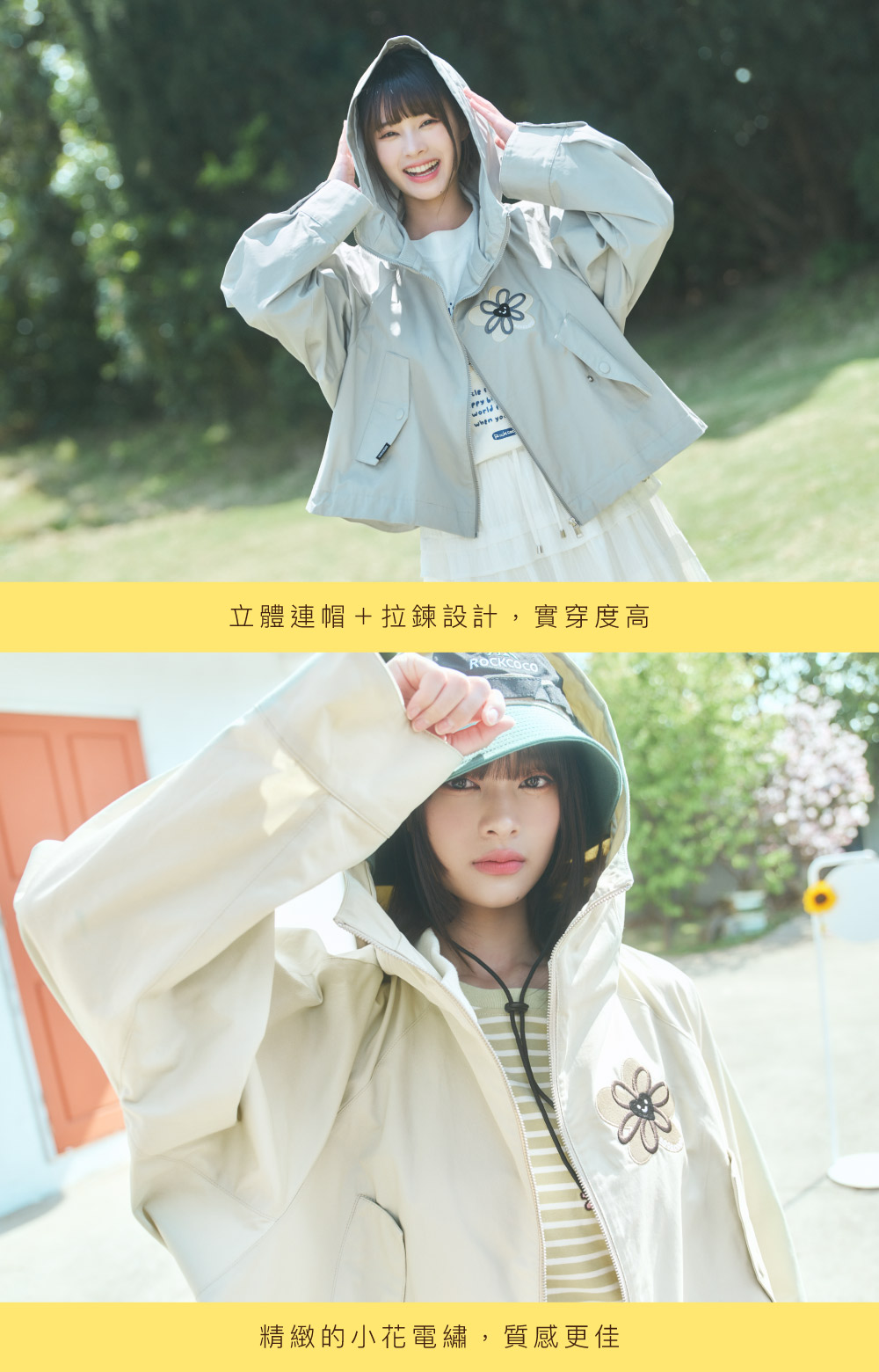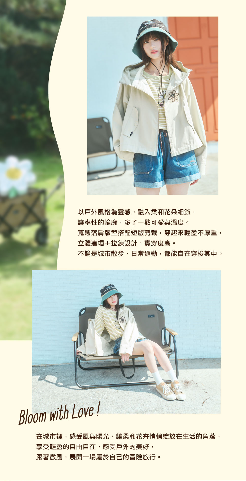 以戶外風格為靈感,融入柔和花朵細節,讓率性的輪廓,多了一點可愛與溫度。寬鬆落肩版型搭配短版剪裁,穿起來輕盈不厚重,立體連帽+拉鍊設計,實穿度高。不論是城市散步、日常通勤,都能自在穿梭其中。