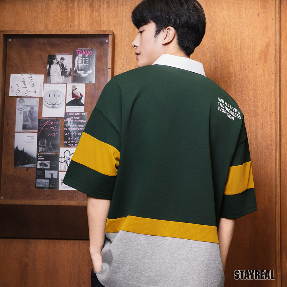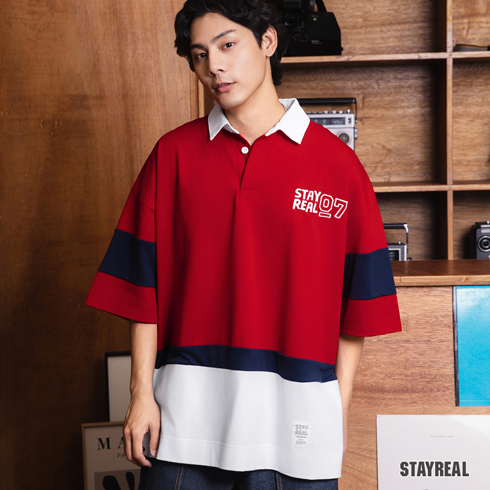 美式學院風橄欖球衫/落肩寬鬆版型