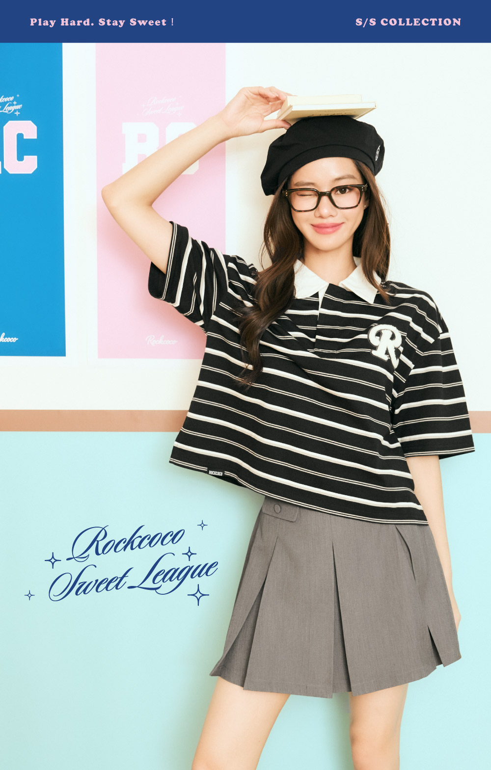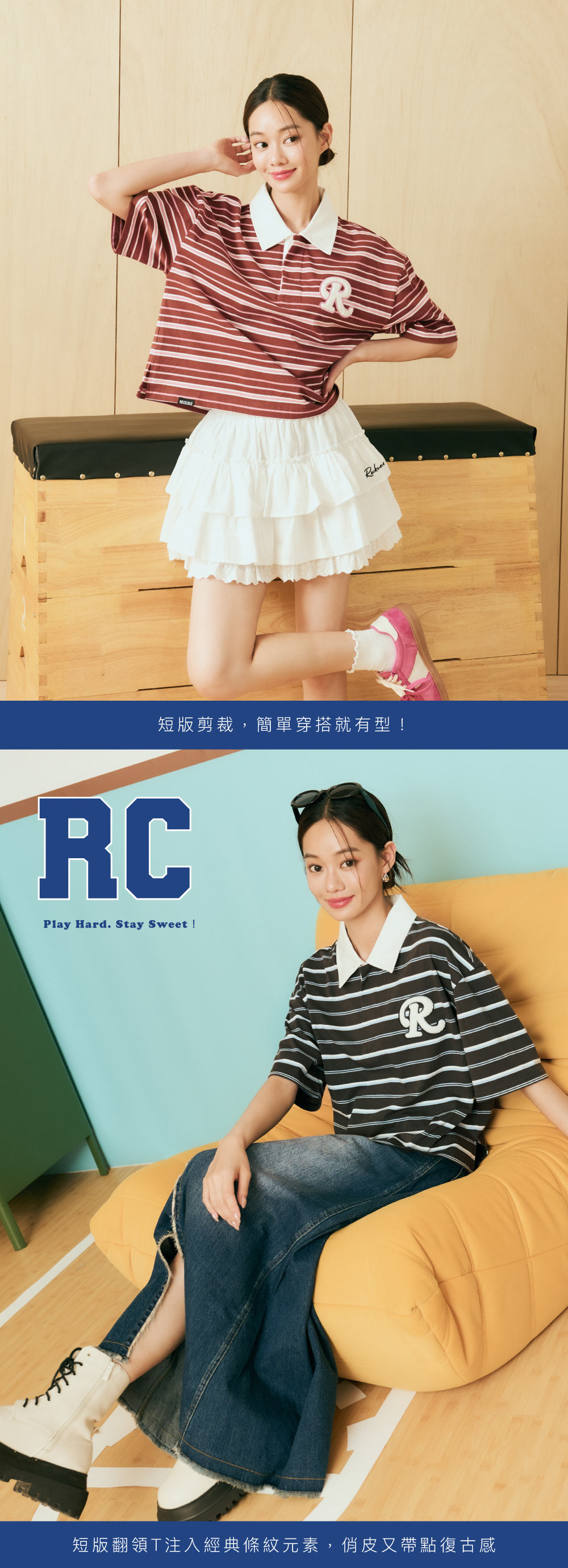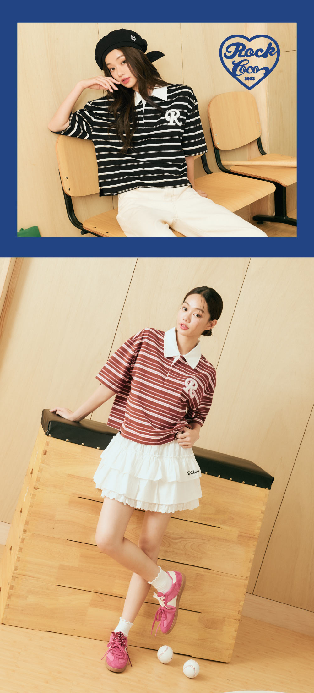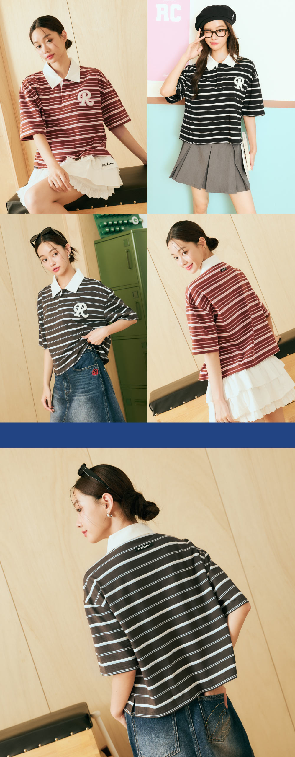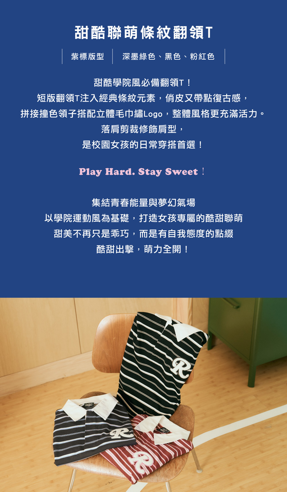 短版翻領T注入經典條紋元素,俏皮又帶點復古感,拼接撞色領子搭配立體毛巾繡Logo,整體風格更充滿活力